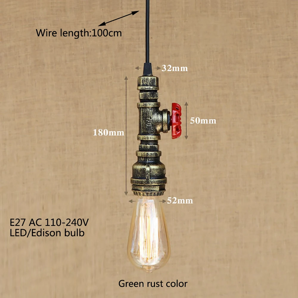 Промышленная железная водопроводная винтажная креативная Подвесная лампа E27 светодиодный подвесной светильник для спальни ресторана кухни гостиной