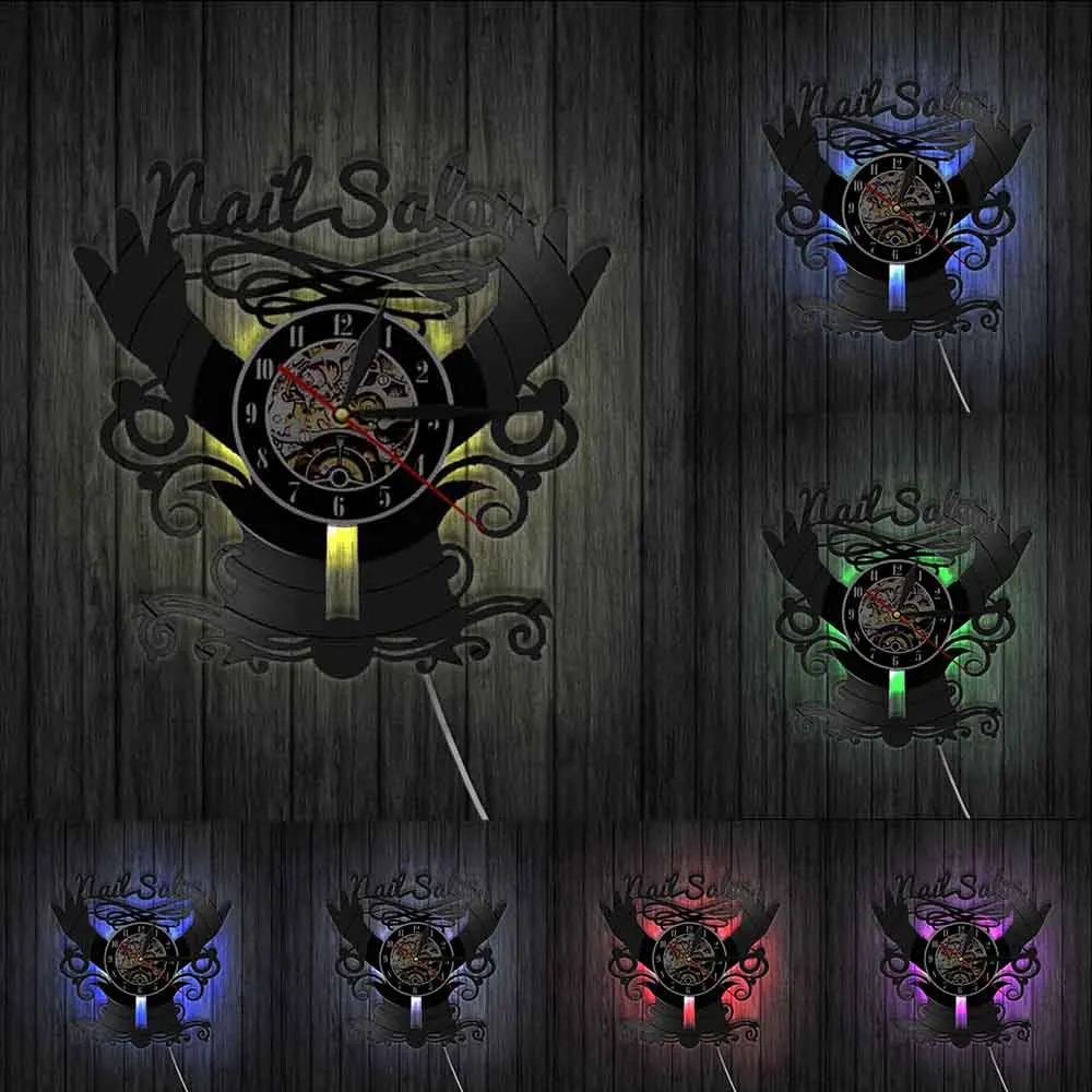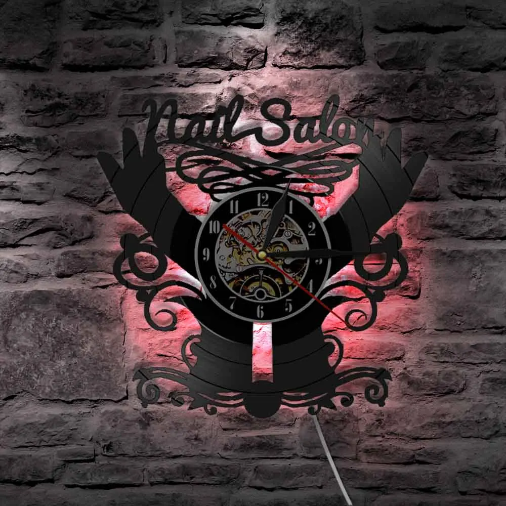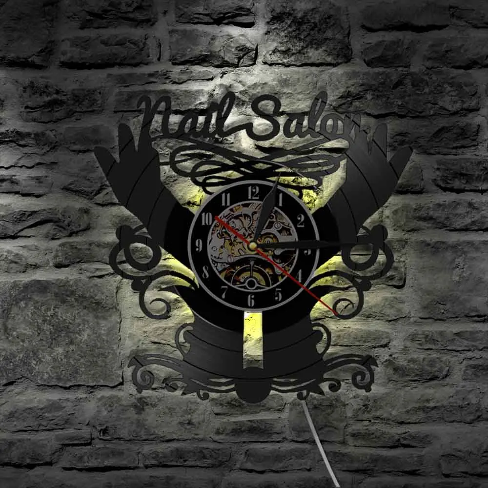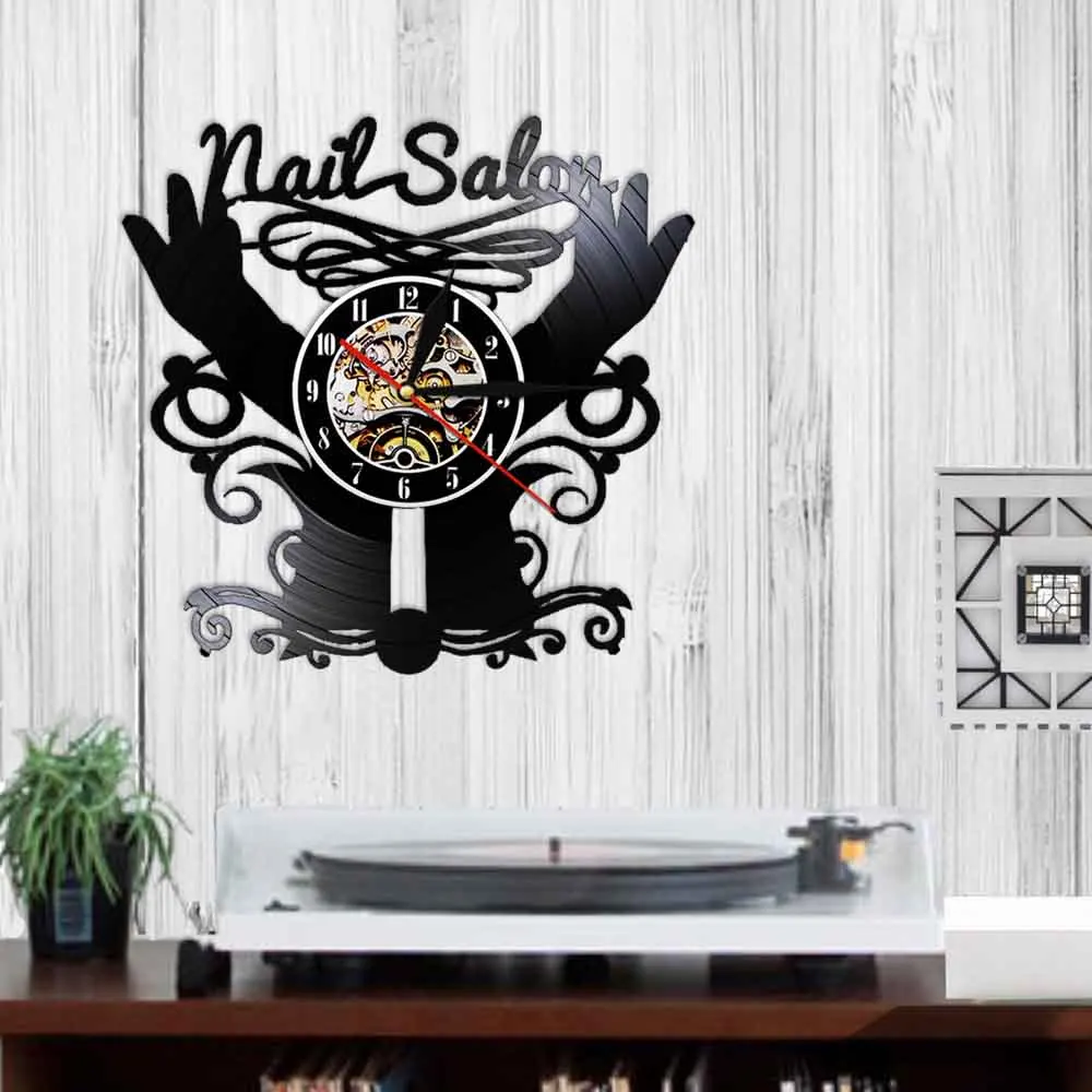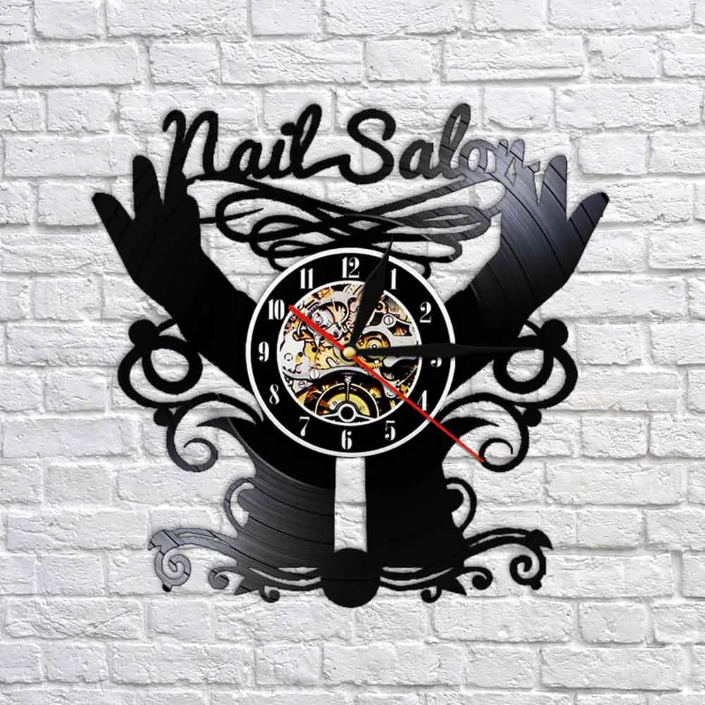 Виниловые часы для маникюрного салона, кварцевые настенные часы для студии красоты, современные декоративные настенные часы, полированные маникюрные индивидуальные часы, настенные часы