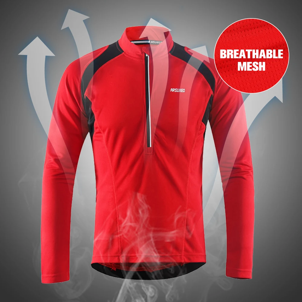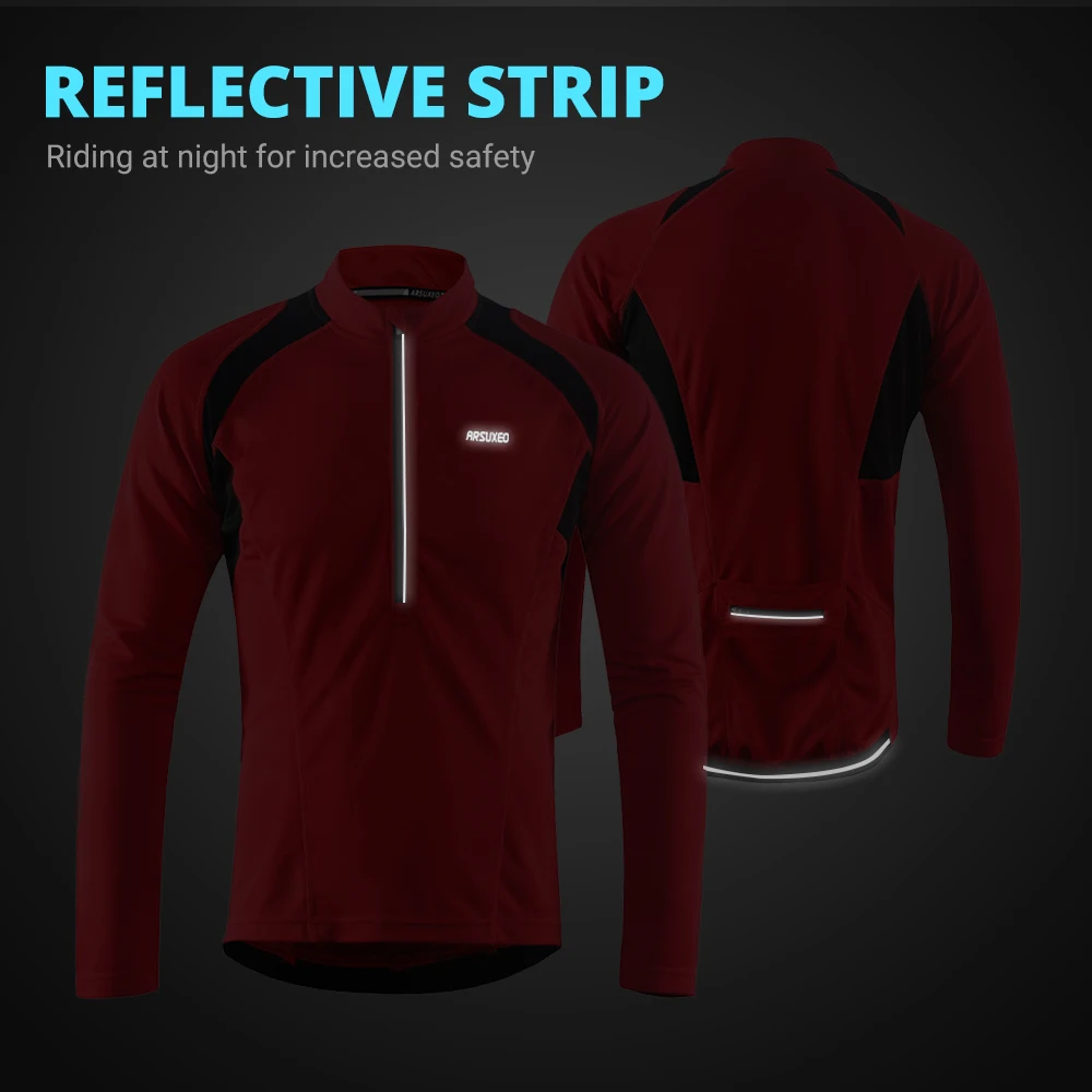 Веломайка ARSUXEO Мужская, с длинным рукавом, Светоотражающие Полоски, с карманами