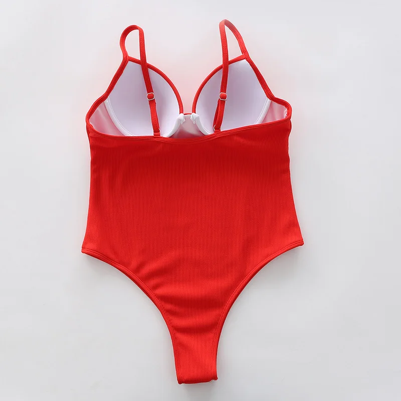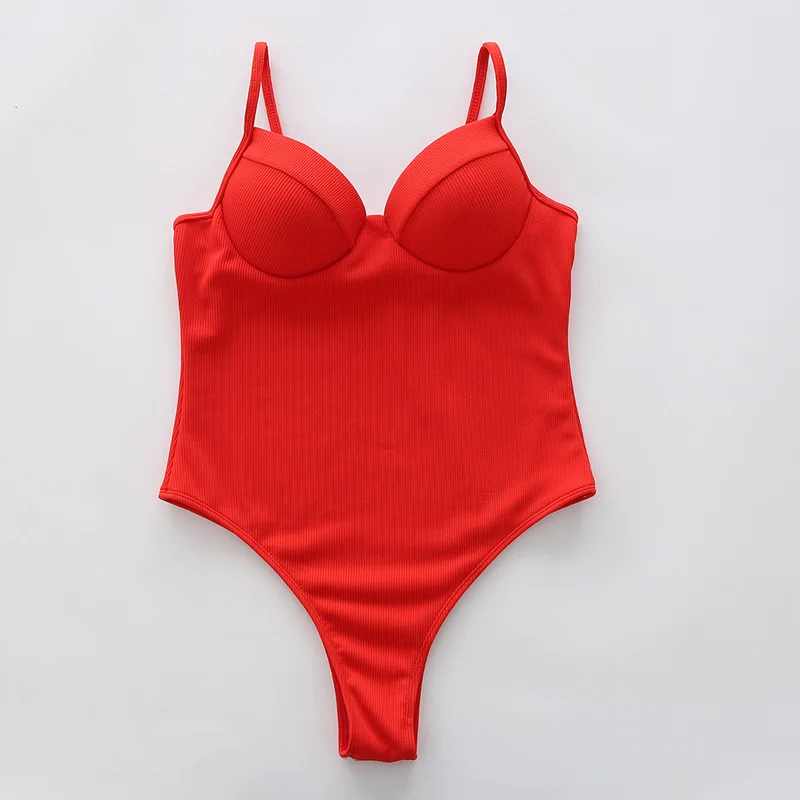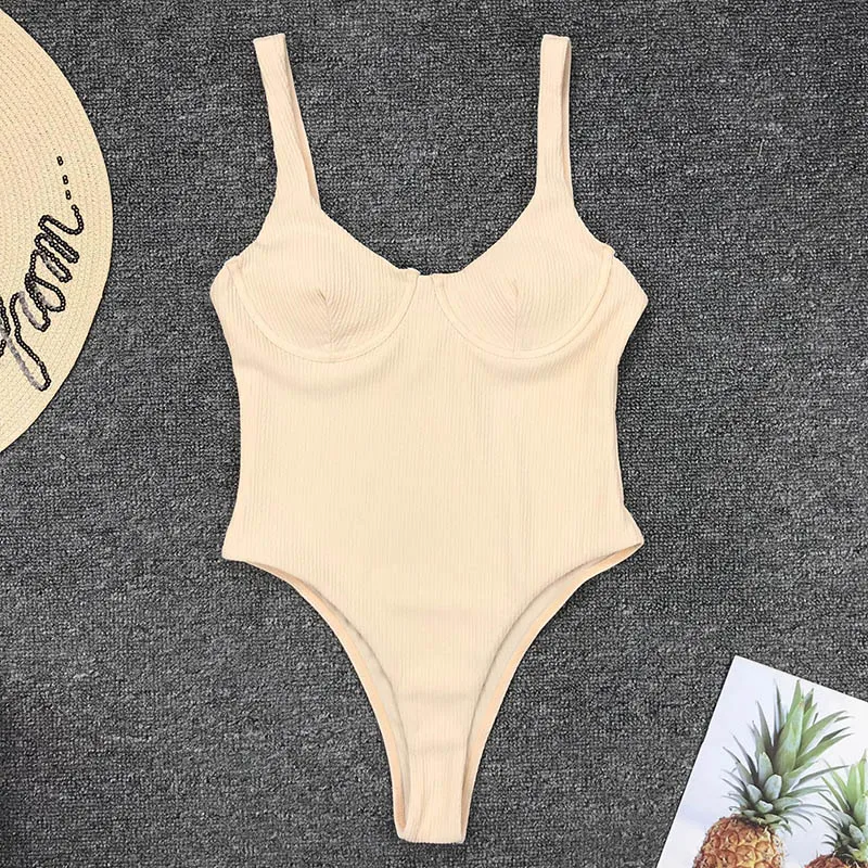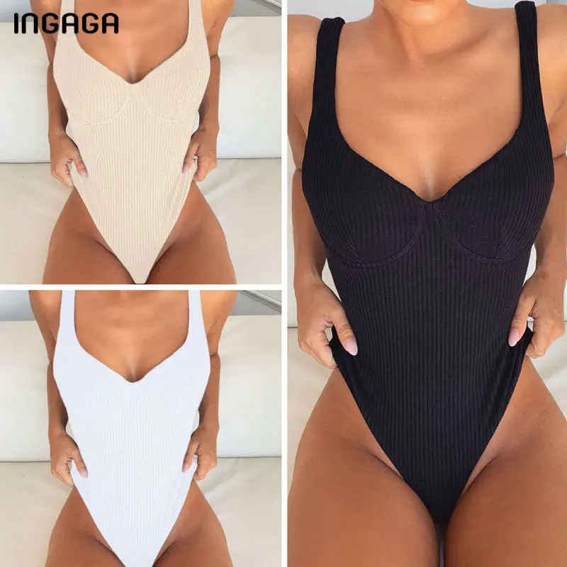 INGAGA сексуальный слитный купальник с пуш-ап, женский купальник 2022, боди с высоким вырезом, женские купальные костюмы в рубчик, пляжная одежда с однотонными лямками