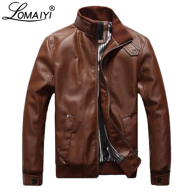Мужская куртка из искусственной кожи LOMAIYI, осенне-зимняя облегающая мотоциклетная куртка из искусственной кожи, мужское пальто с мехом, мужские кожаные куртки BM261