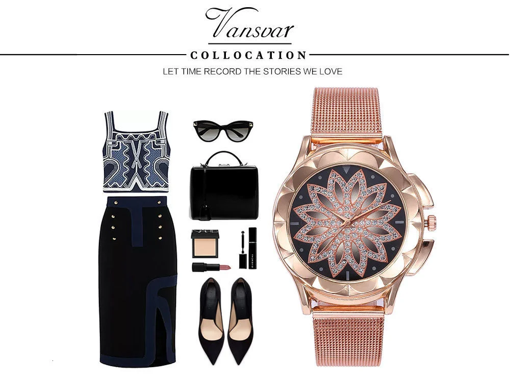 Модные женские розовые наручные часы с золотыми цветами и стразами, роскошные повседневные женские кварцевые часы, женские часы, Прямая доставка