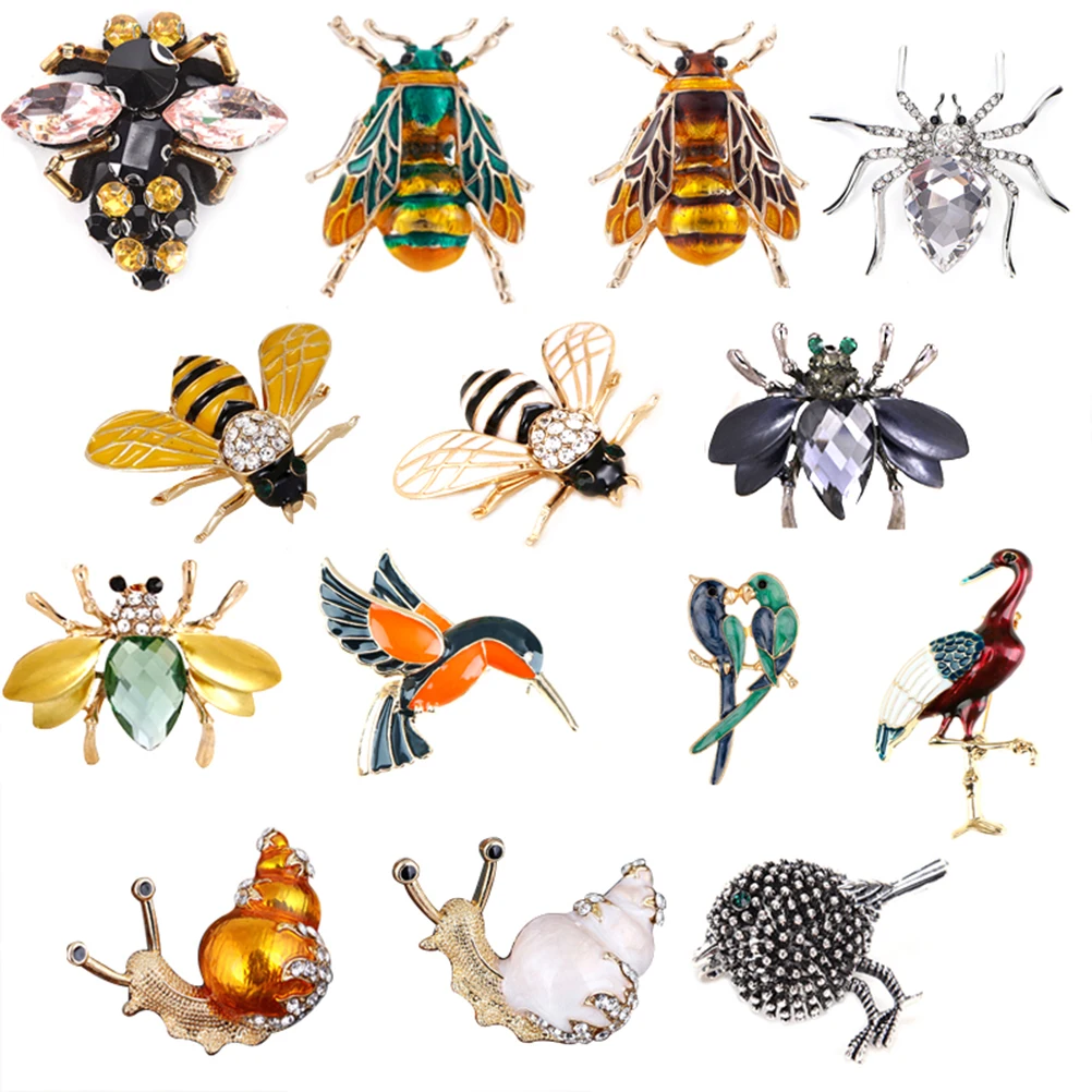 Пчела, жук, краб, муравья, улитка, птицы, броши, Скорпион, горный хрусталь, винтажная животная бижутерия, аксессуары, брошь