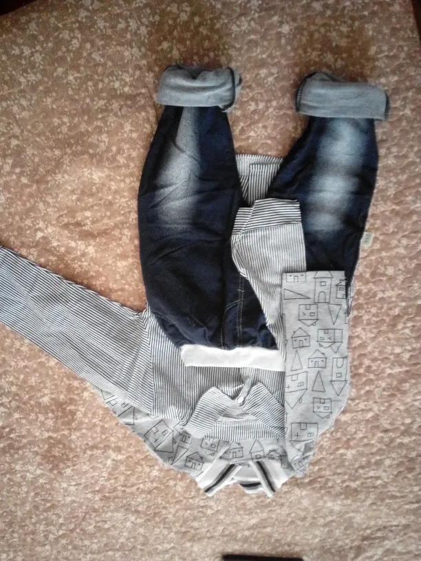Костюм прикольный! Рубашка плюс жилетка, бабочка и брюки (я поотзывам прочла что не Джинс ) постирала цвет непоменялся. с размером неугодала на рост 105 см в притык надо было брать больше размер