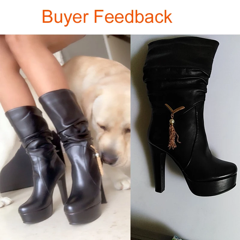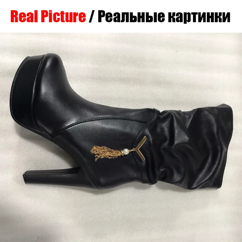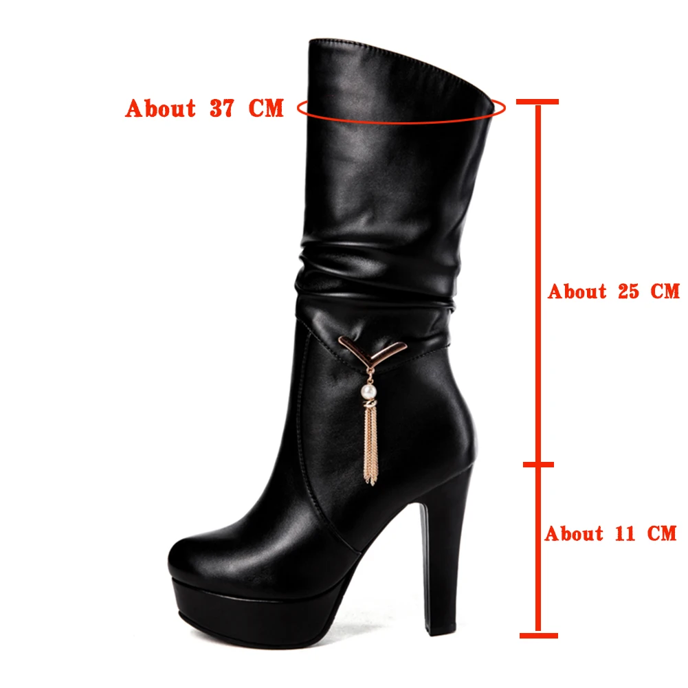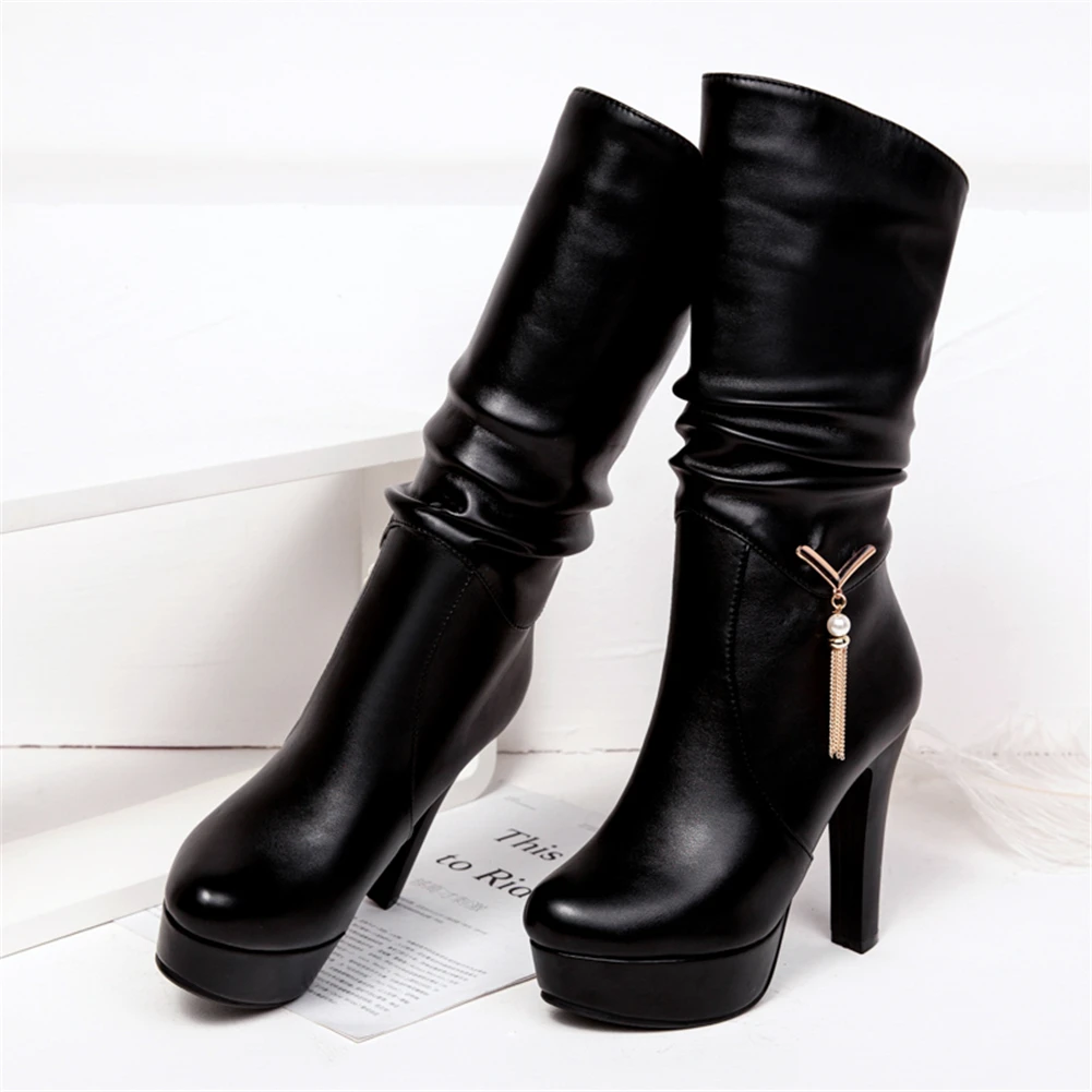 Женские Плиссированные сапоги BONJOMARISA, черные сапоги до середины икры на платформе, без застежки, на высоком каблуке, большие размеры 34-43, 2020