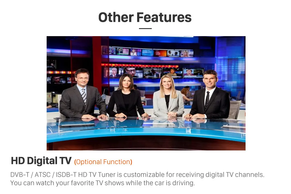 Радио-тюнер: Встроенный с сильным цифровым FM/AM радио тюнером, эта система A/V автомобиля функции поиска радиоканалов автоматически, вручную и хранить их в процессе. Также поддерживается RDS.