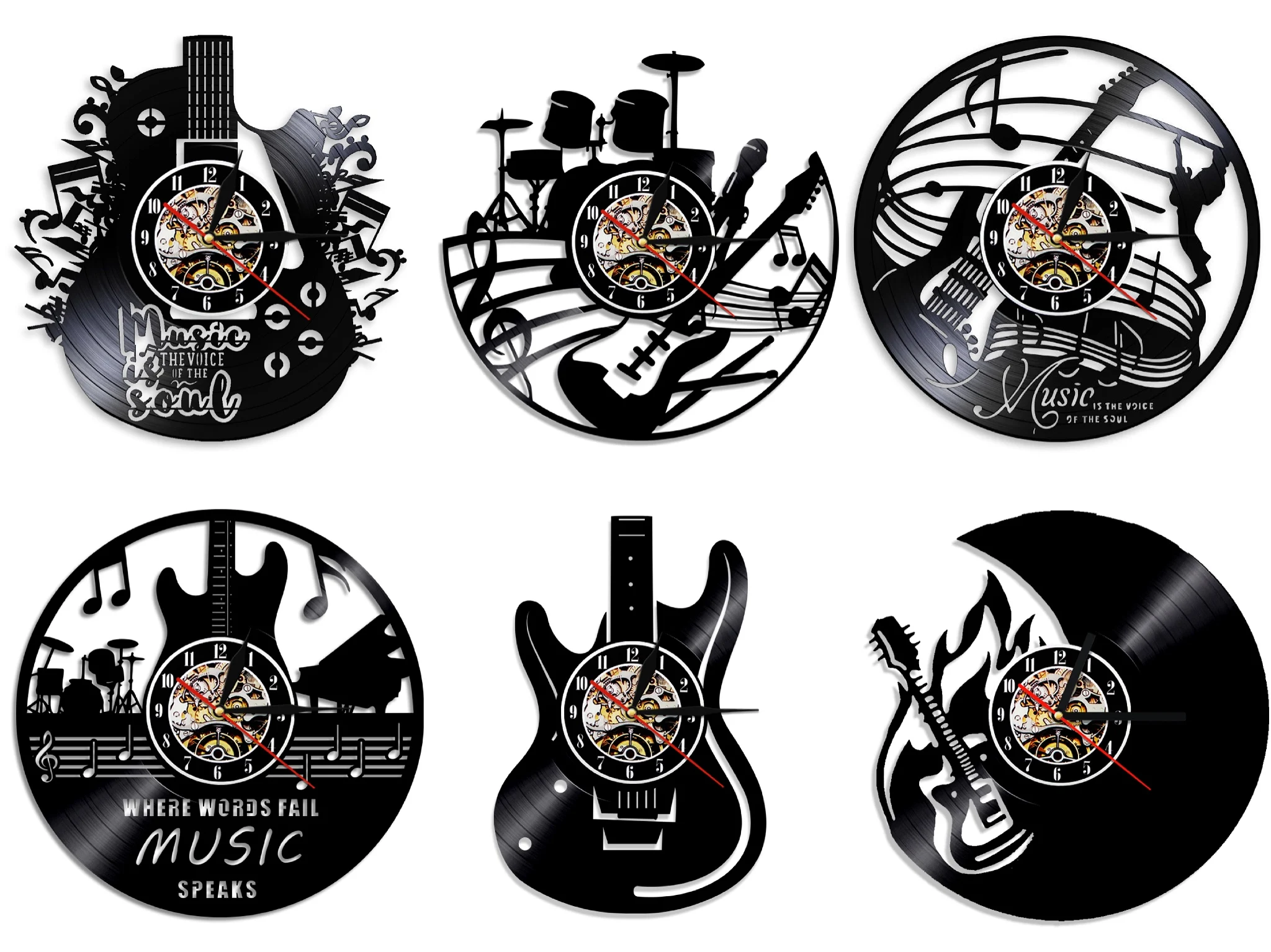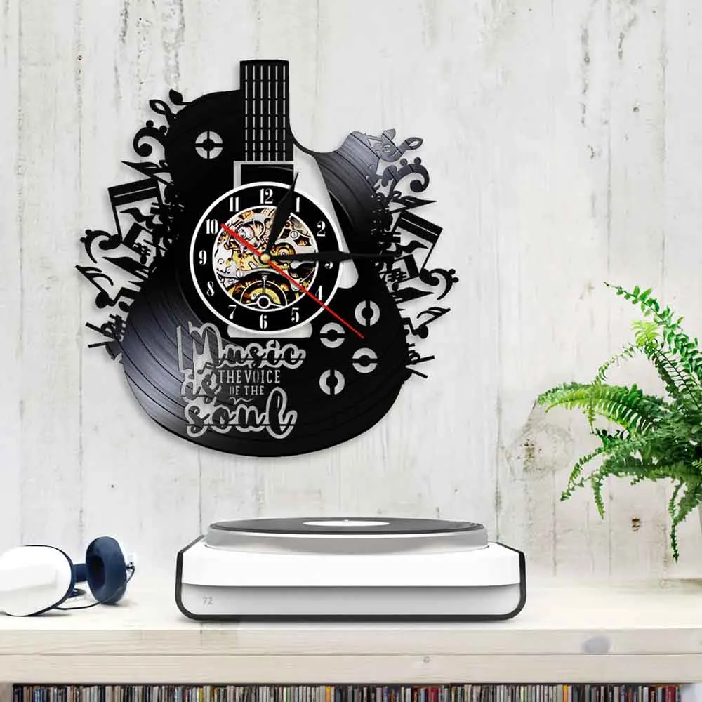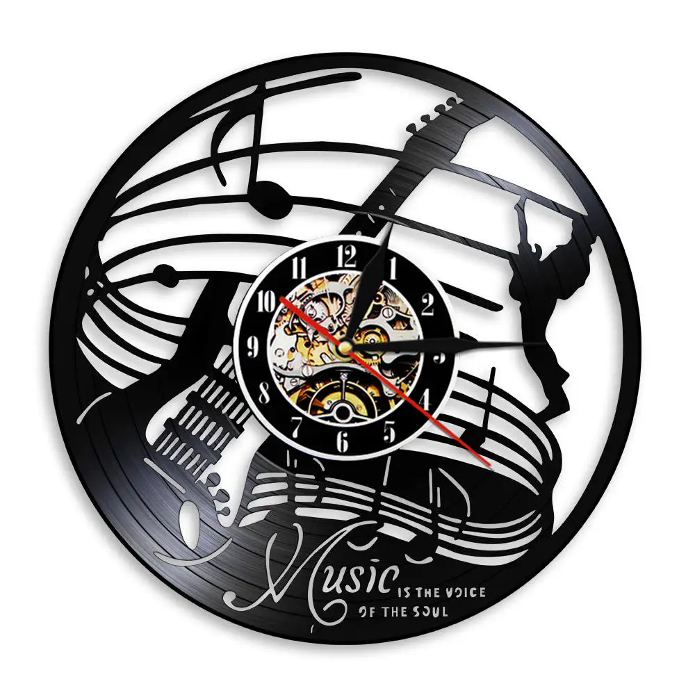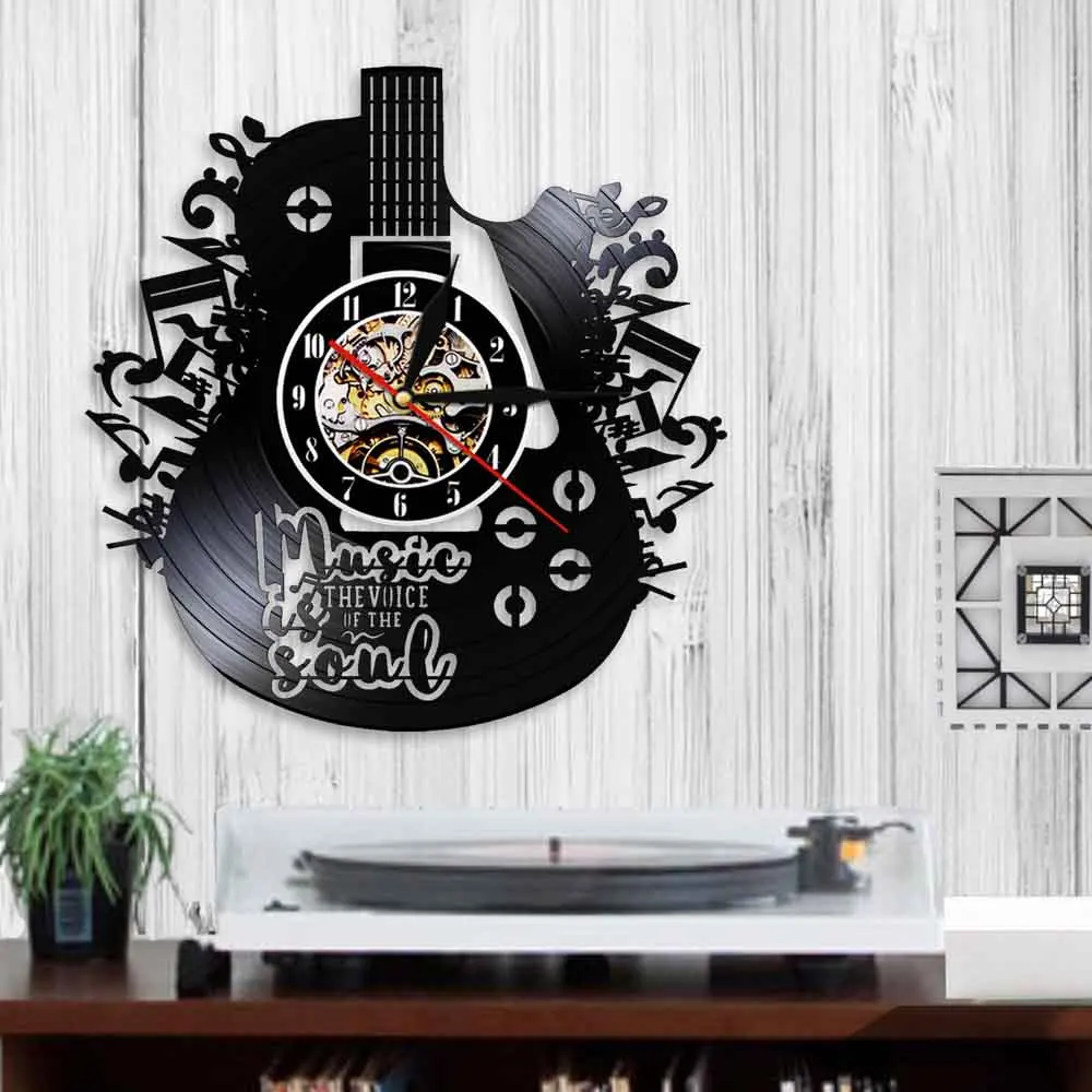 Настенные часы Music Is Soul с виниловой пластиной, декоративные 3d-часы для украшения стен гитары, музыкального инструмента, для комнаты
