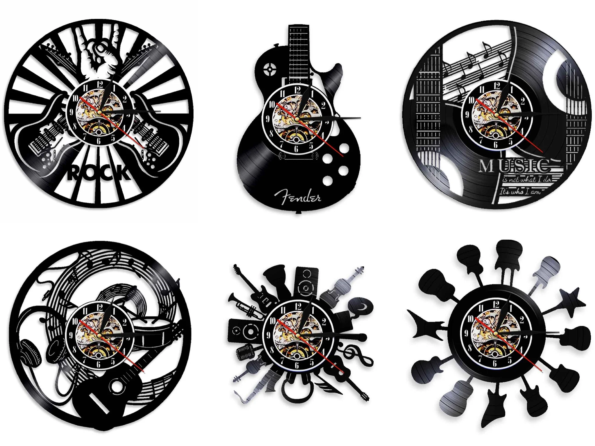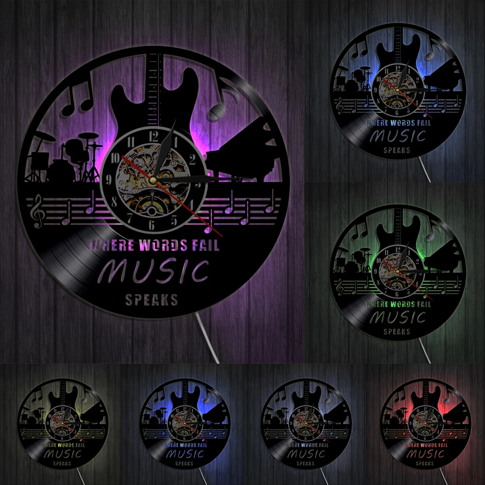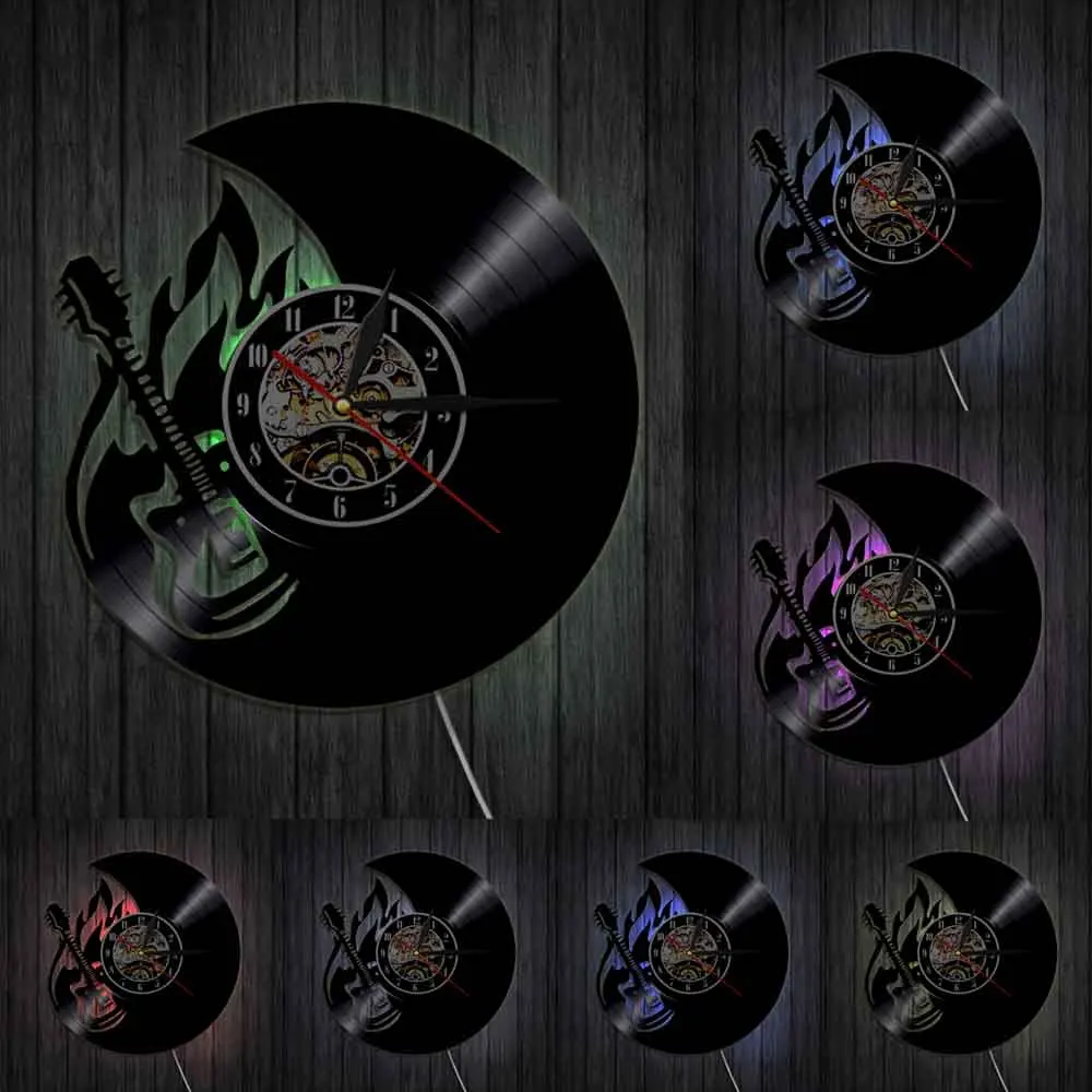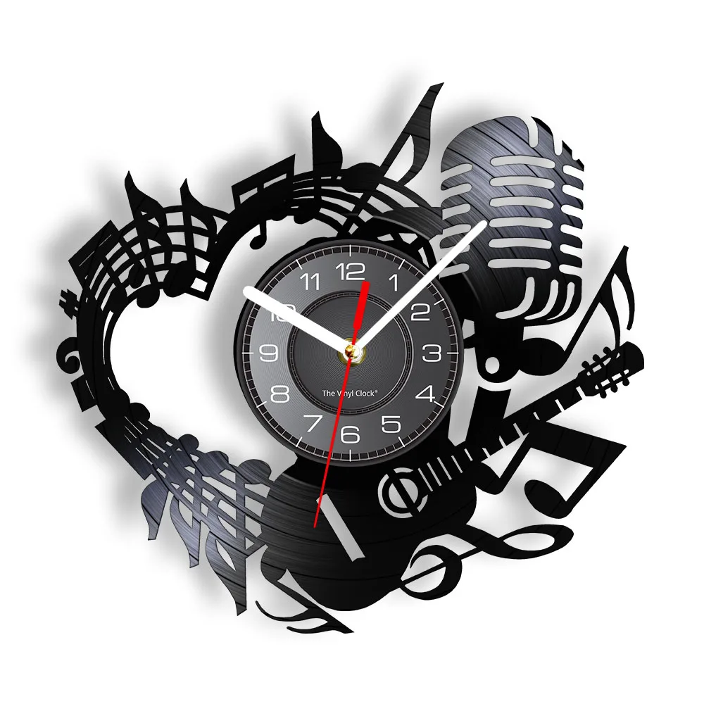 Настенные часы Music Is Soul с виниловой пластиной, декоративные 3d-часы для украшения стен гитары, музыкального инструмента, для комнаты