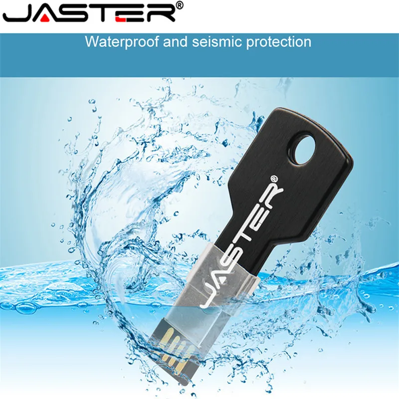 USB-флеш-накопитель JASTER в форме металлического ключа, флеш-накопитель с пользовательским логотипом, U-диск с реальной емкостью, 4G, 8G, 16G, 32 ГБ, 64 ГБ, 128 ГБ