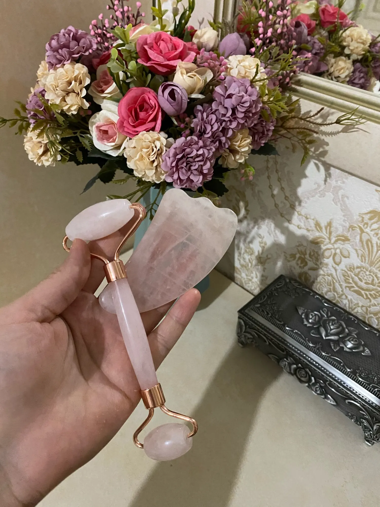 Набор кристаллических роллеров для массажа лица, Нефритовый ролик для Массажа Гуаша, Нефритовый скребок, розовый кварц, массажер для подтяжки лица инструмент для красоты