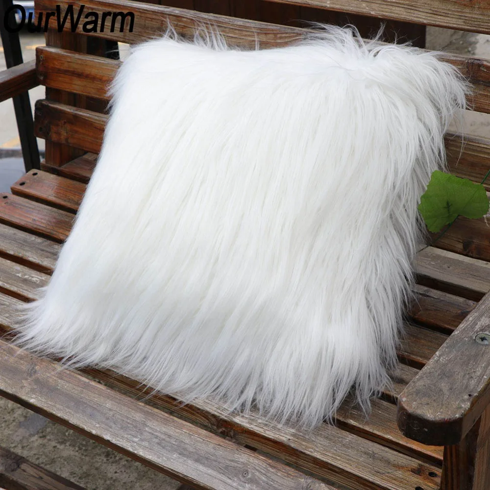 OurWarm 45X45CM Рождественская роскошная белая плюшевая подушка, чехол с одной стороны из искусственного меха, декоративная подушка, квадратный плюш для дома