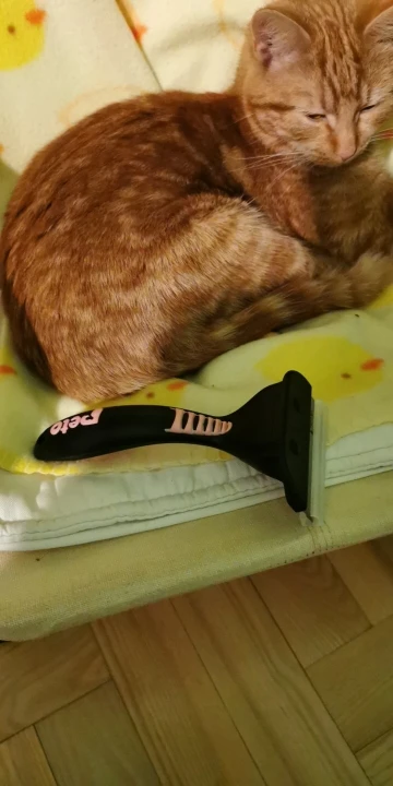 Щетка хорошая, вычесывает прилично, но котенок сильно не линяет пока, так что шерсти не много. Удобная, не острая. Есть защитный кожух. До Москвы шла 27 дней, из которых 2 недели по России. Спасибо продавцу!