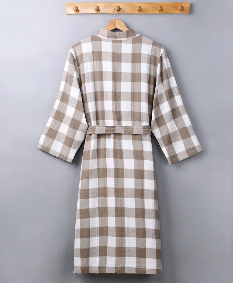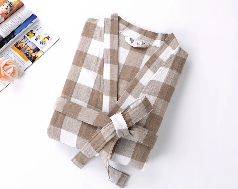 Халат летне-осенний, из 100% хлопка, двухслойный, газовый, кимоно в клетку, ночная рубашка свободного кроя, большие размеры, домашний банный Халат icon star icon star icon star icon star icon star
