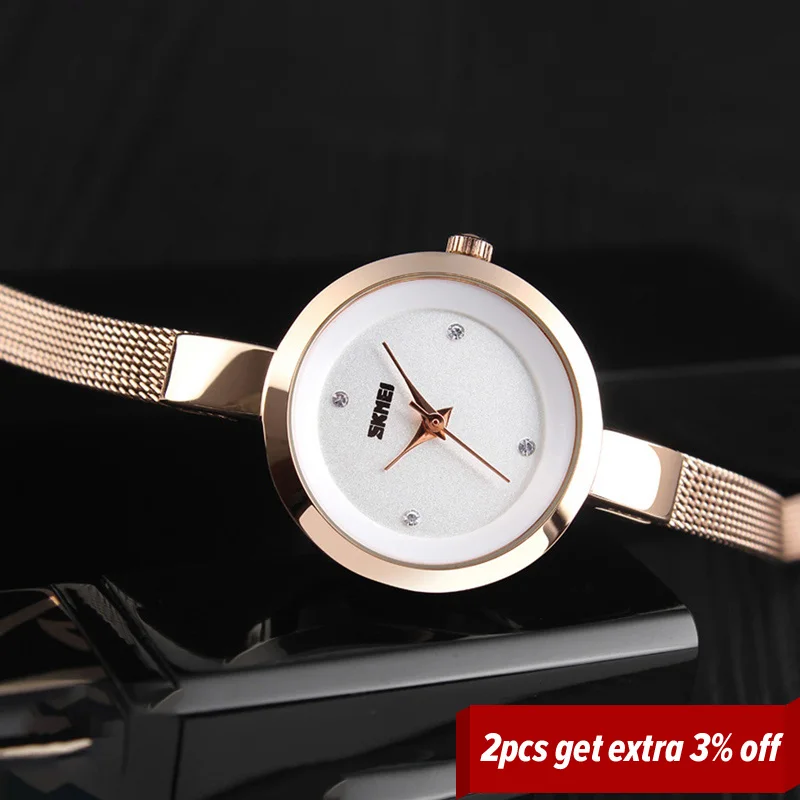 SKMEI роскошь Кварцевые женские часы тонким ремешком модные женские туфли часы Повседневное Нержавеющаясталь женский Wristwatcch Relogio Feminino 1390