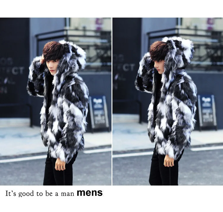 Мужское меховое пальто с капюшоном, куртка оверсайз из искусственного меха на зиму