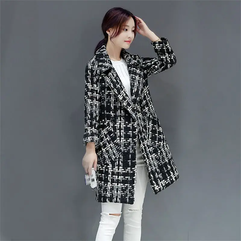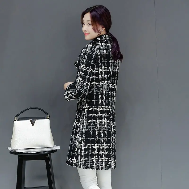 Зеленое клетчатое пальто, женское осенне-зимнее пальто средней длин...