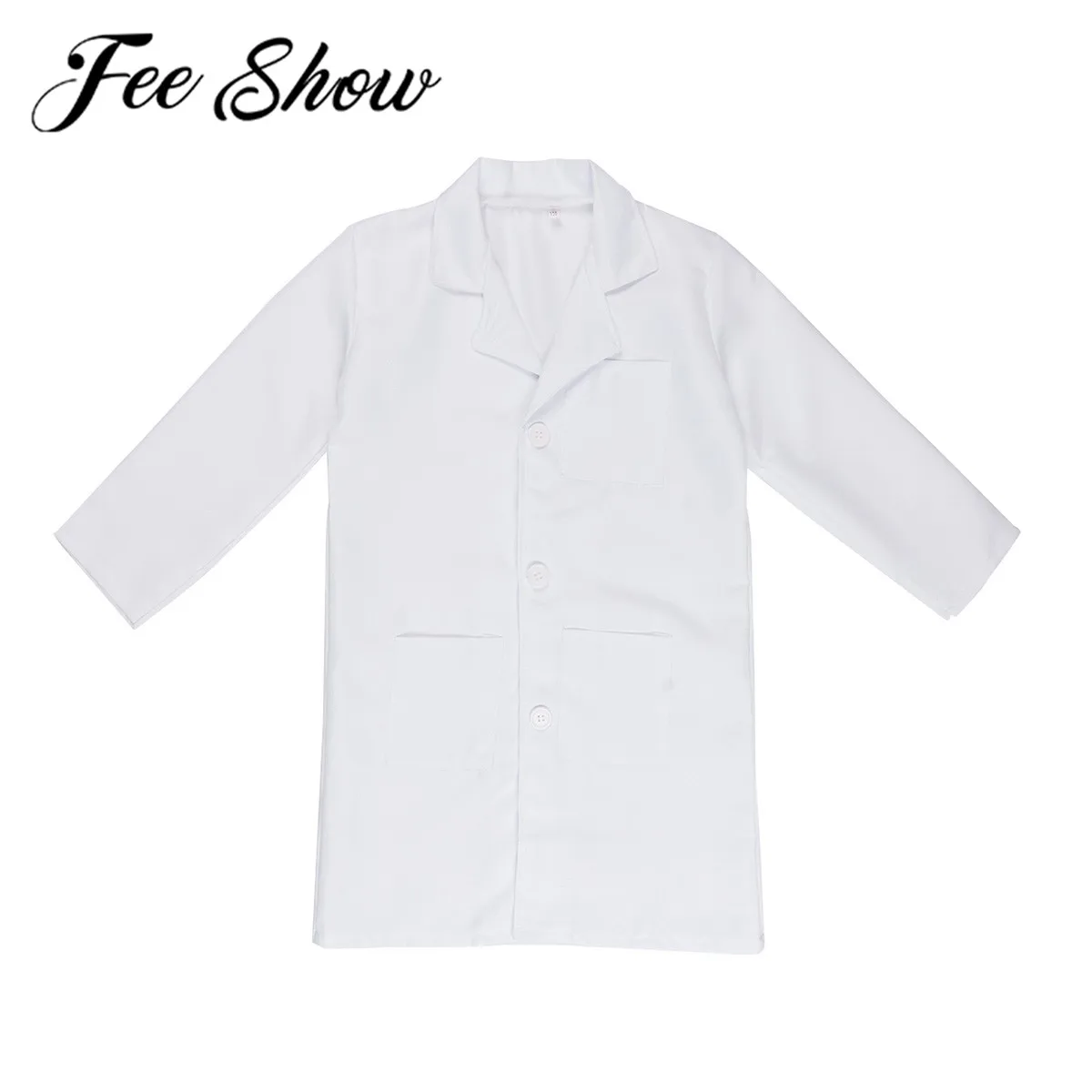 FEESHOW унисекс косплей на Хэллоуин белый доктор медсестра ученый лаборатория с длинным рукавом пальто костюм детская одежда для косплея