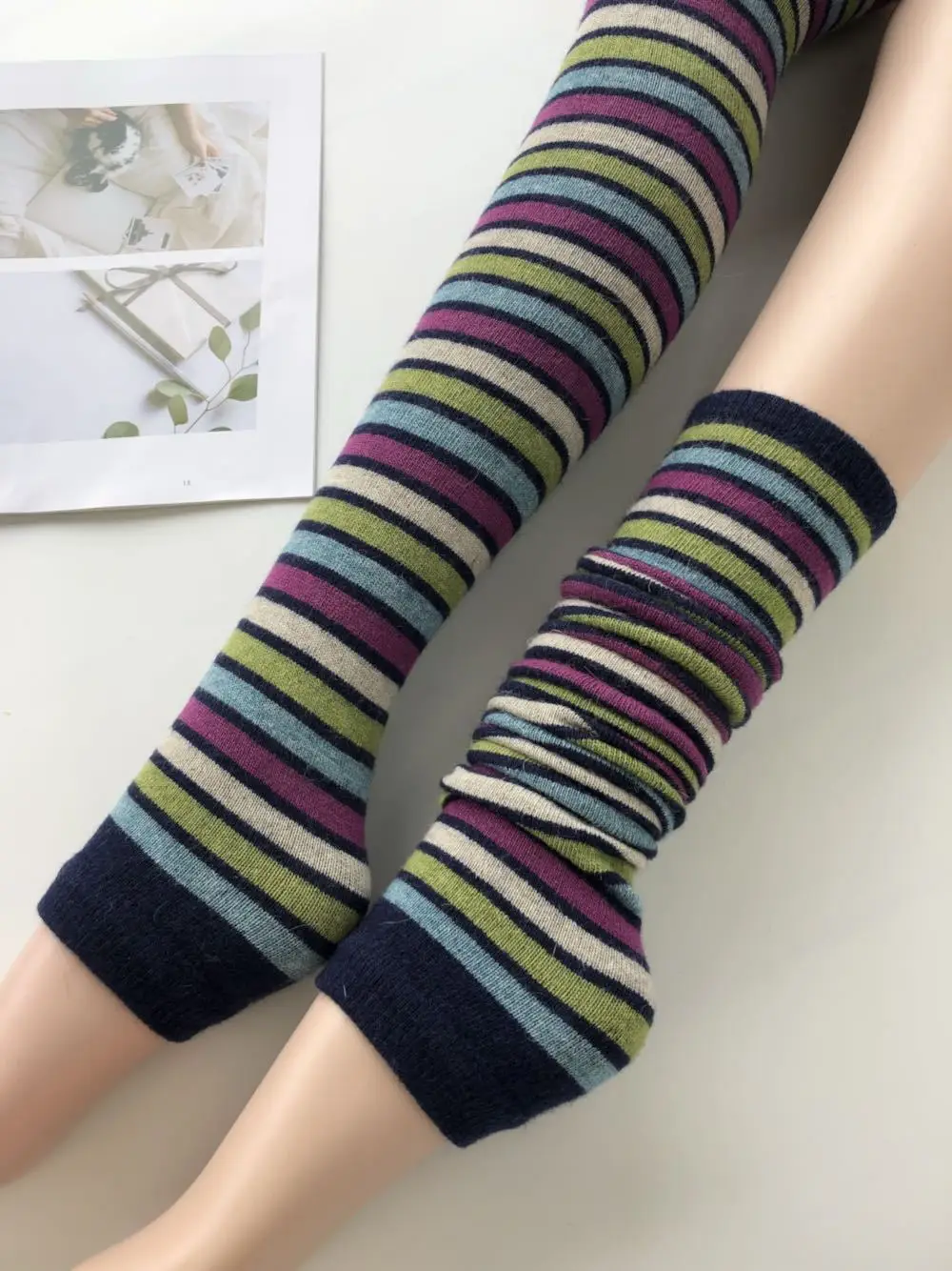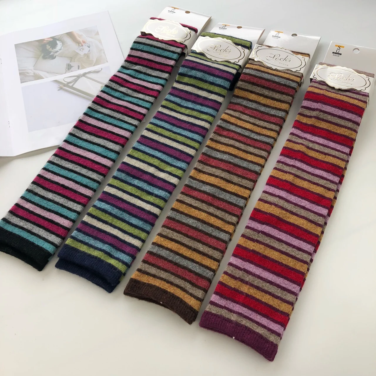 Длинные вязаные сапоги выше колена из кроличьей шерсти радужные Модные женские зимние сапоги-гетры 1 пара Прямая поставка