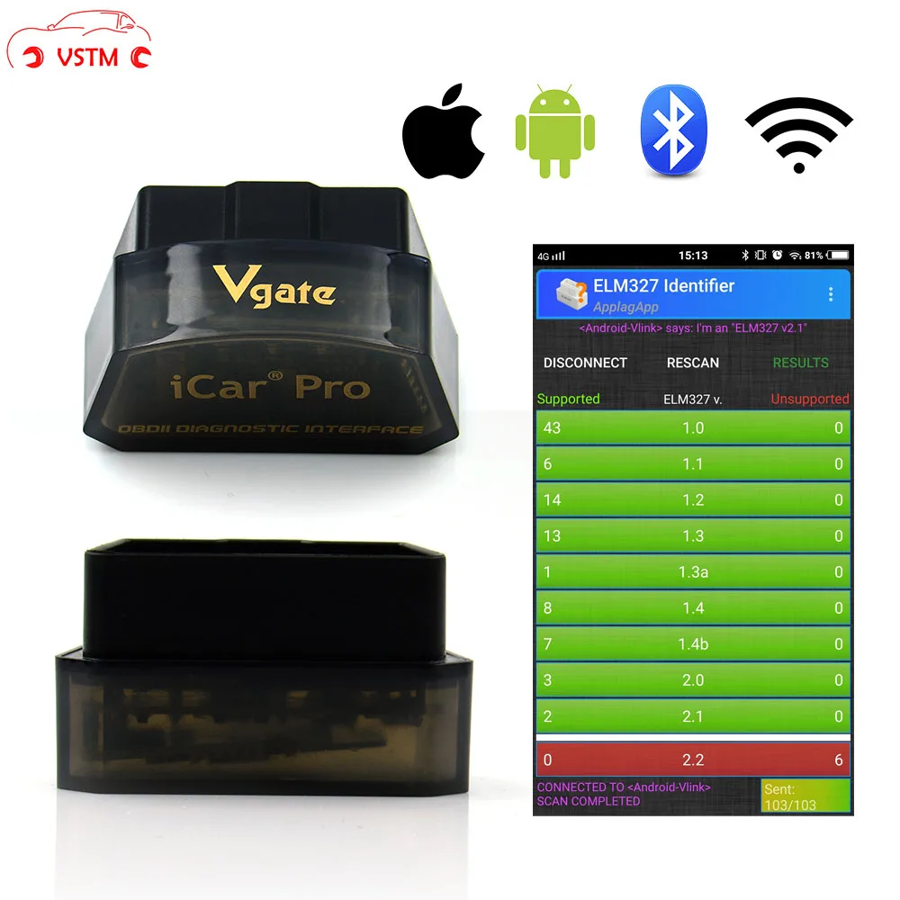 Vgate iCar Pro OBD II adpater-это высококачественный автомобильный инструмент сканирования, поддерживает все протоколы OBD-II: