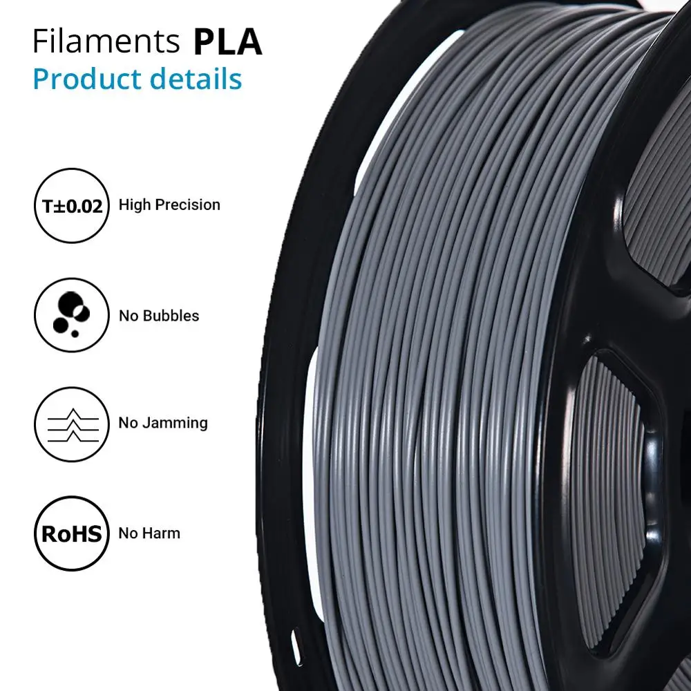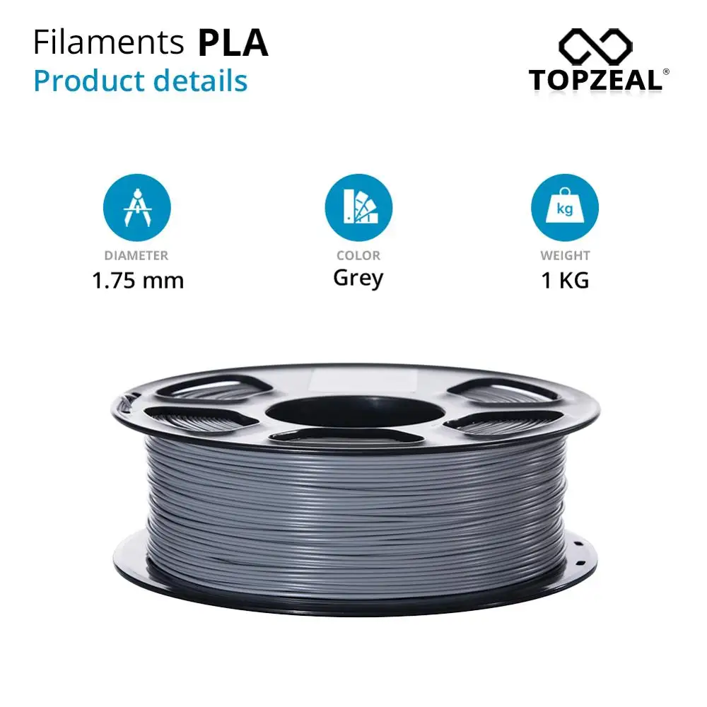 Филамент PLA для 3D-принтера TOPZEAL, точность размеров +/-0,02 мм, катушка 1 кг, 1,75 мм, серый цвет
