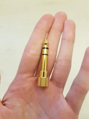 Адаптер хороший. Наушники 3.5 вставляются плотно, со щелчком. Не люфтит. Покупала для того чтобы играть на электронном пианино Yamaha np-12 в наушниках. Звук передаётся такой же как и без наушников. Пришло с доставкой plus быстро.