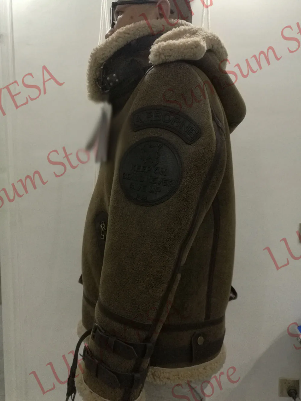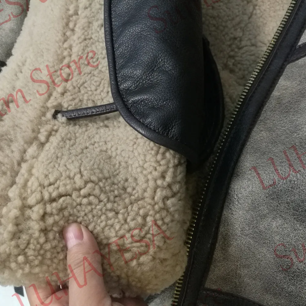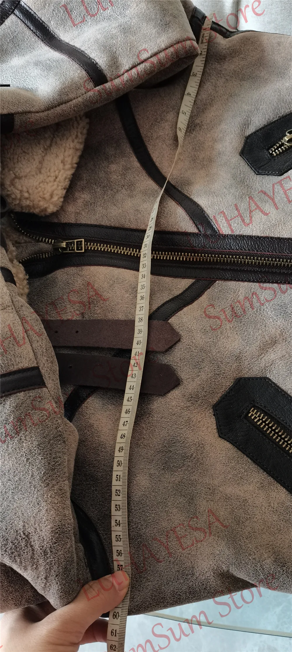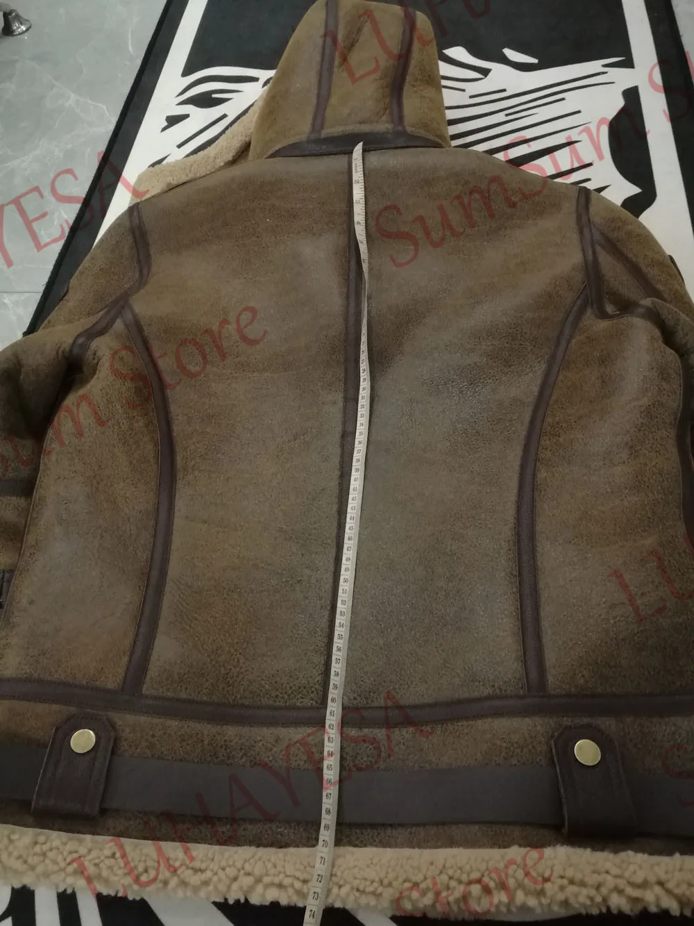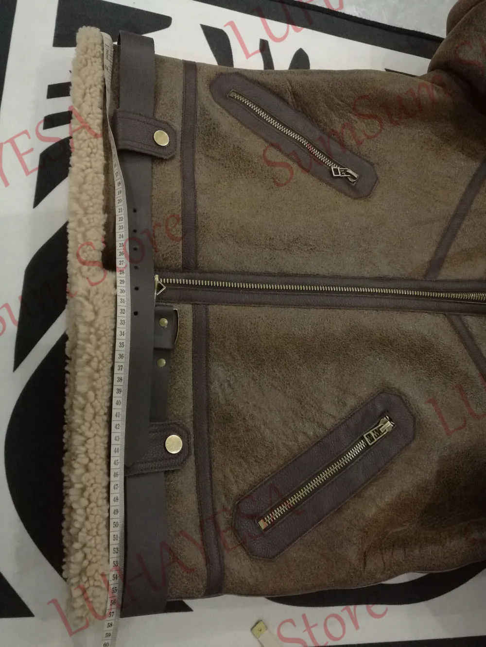 Мужская куртка из натуральной овечьей шкуры, коричневого цвета, для зимы, 100%