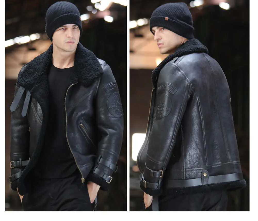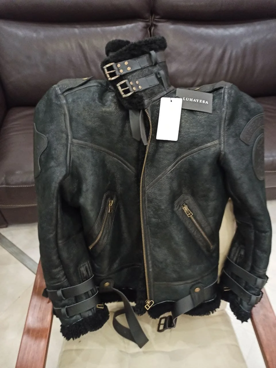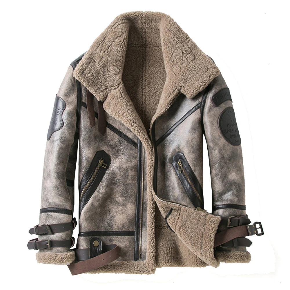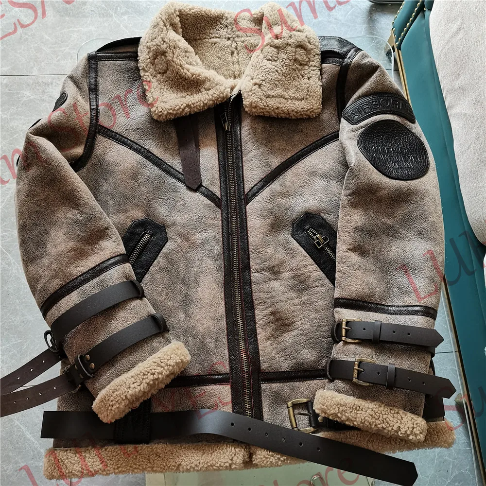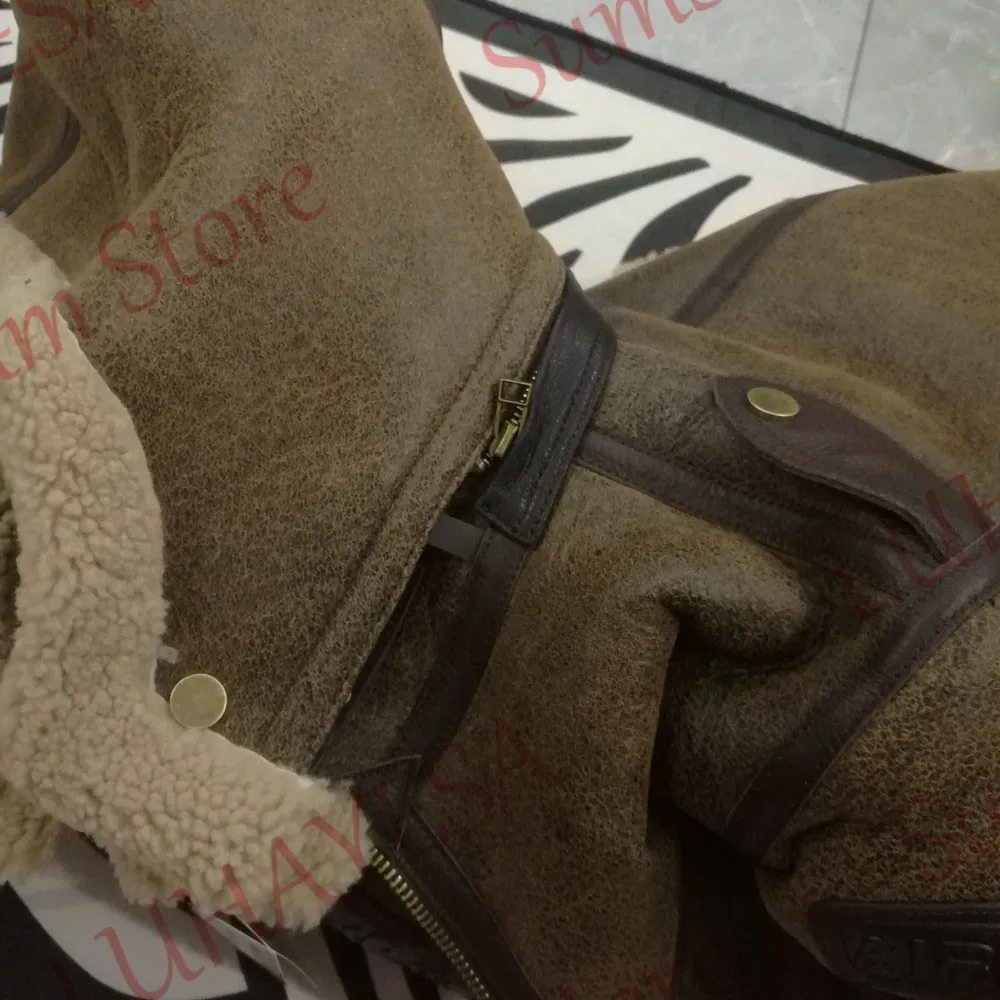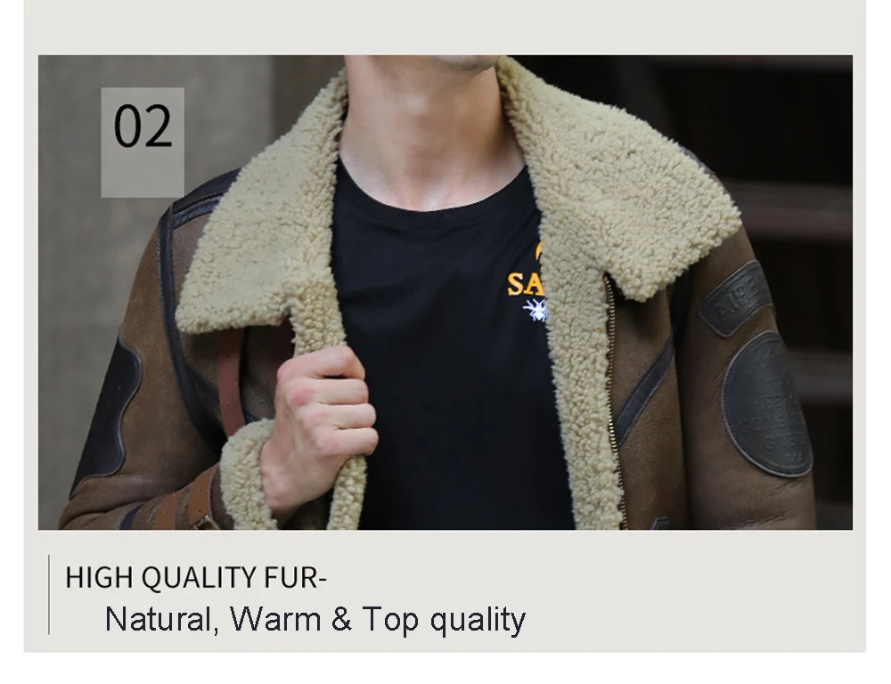 Мужская куртка из натуральной овечьей шкуры, коричневого цвета, для зимы, 100%