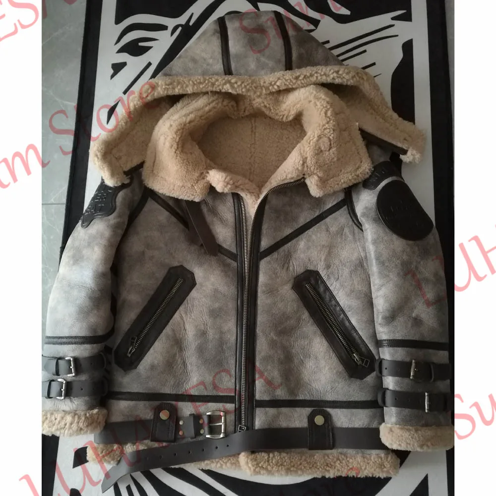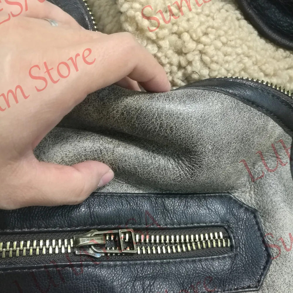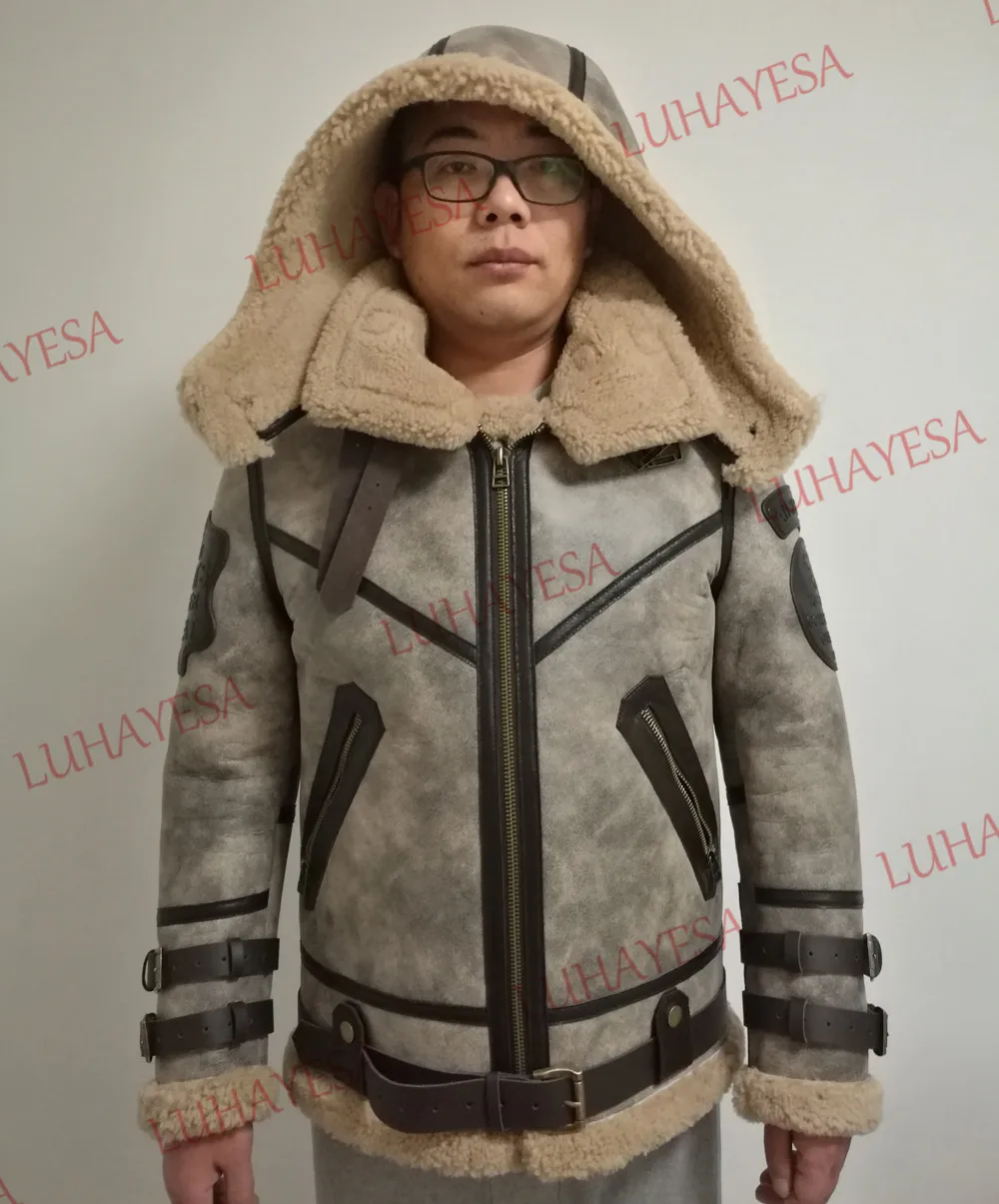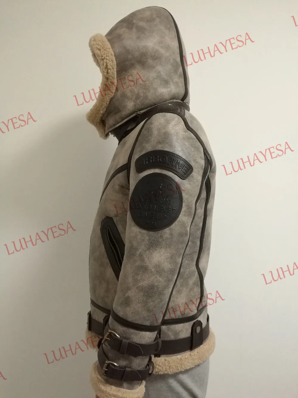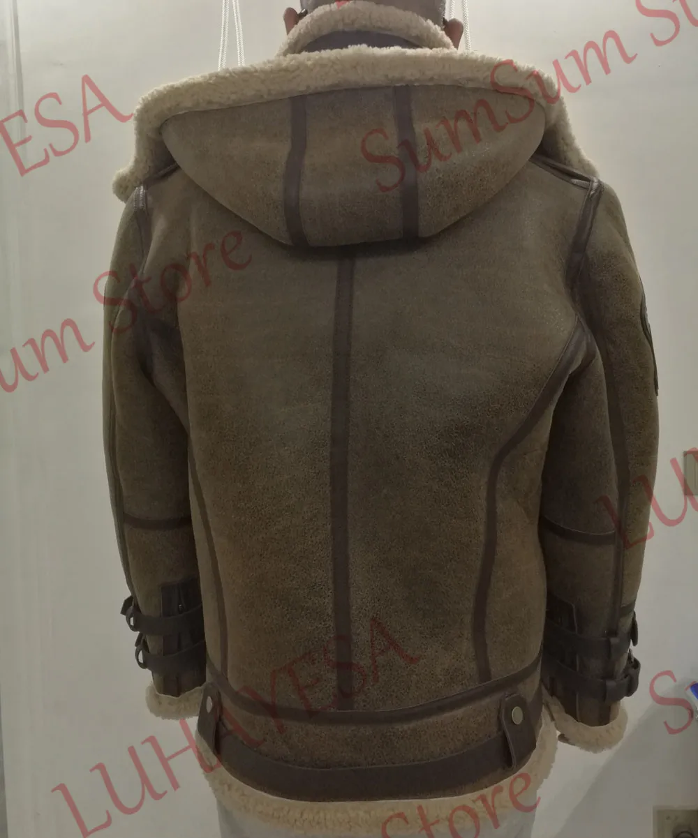 Мужская куртка из натуральной овечьей шкуры, коричневого цвета, для зимы, 100%