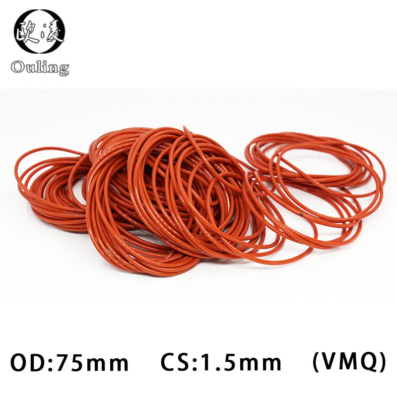 Красные силиконовые кольцо Силиконовое уплотнительное кольцо толщиной 1,5 мм OD6075 мм уплотнительное резиновое уплотнительное кольцо водонепроницаемая полоса эластичные кольца для шайбы