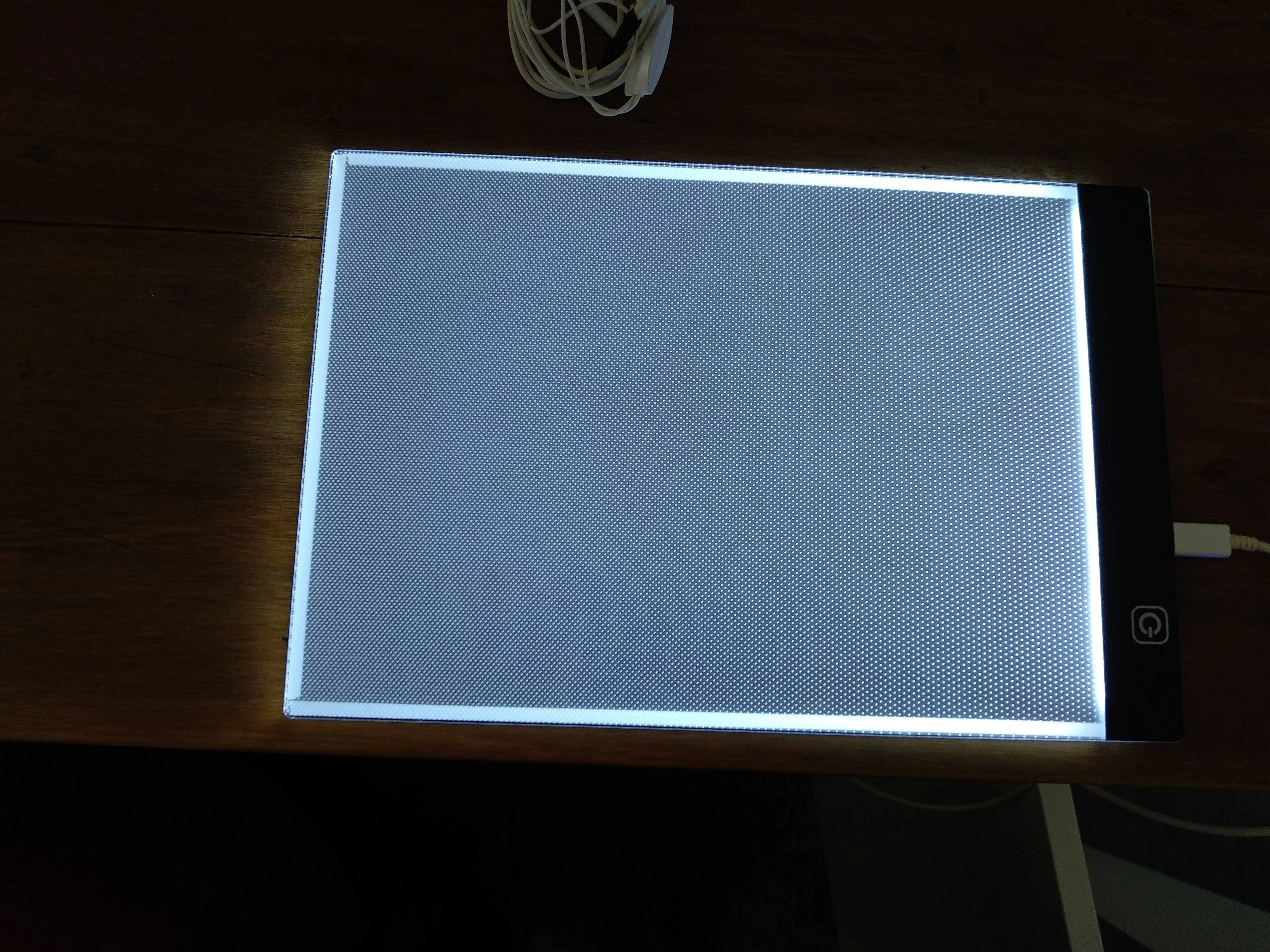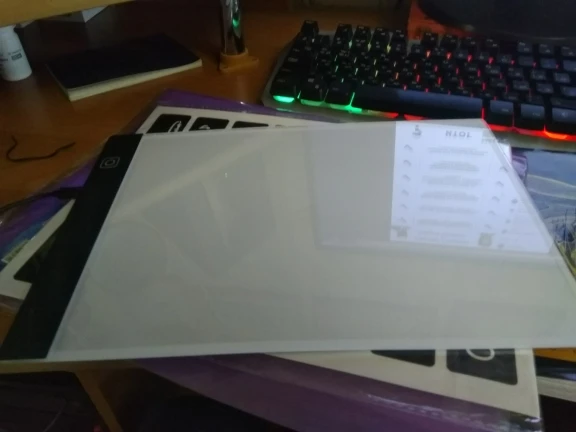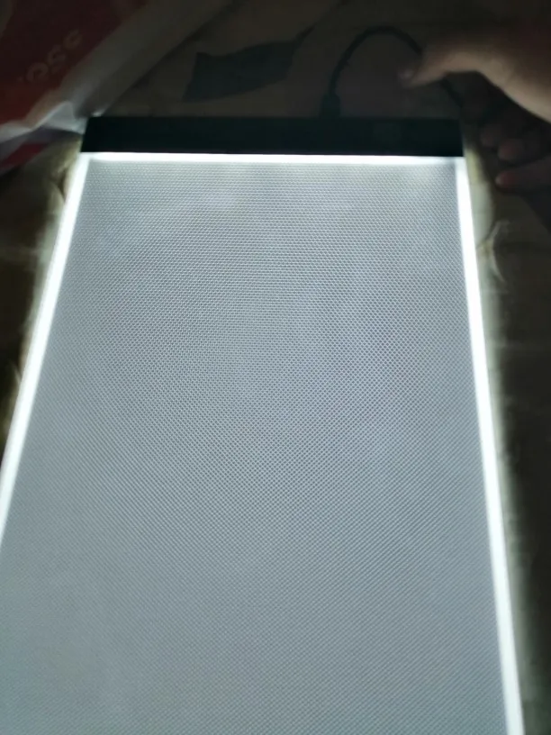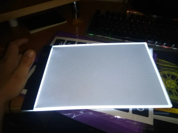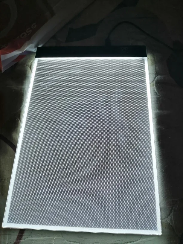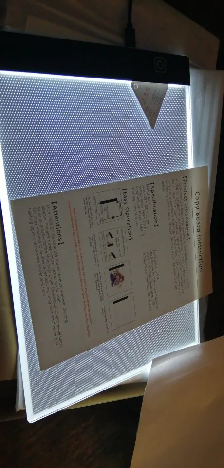 Планшет пришёл хорошо упакованным. Без сколов и трещин. Очень хорошего качества и очень лёгкий. Удобно работать на нем. Хорошо просвечивает даже толстые листы бумаги. Имеет 3 уровня света. Полезная вещь!
