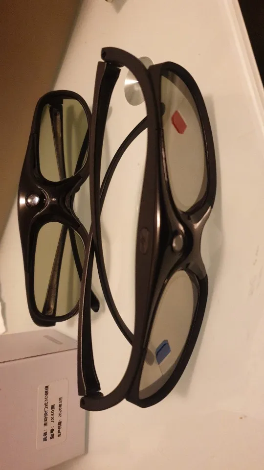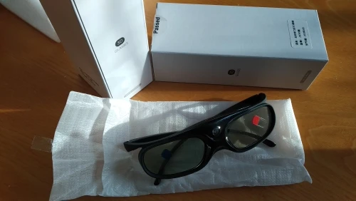 хорошие очки, лёгкие, с достаточным обзором. но как-то странно включаются. приходится закрывать датчик IR пальцем на пару секунд, чтобы синхронизировались с проектором. есть функция смены местами L/R глаза.