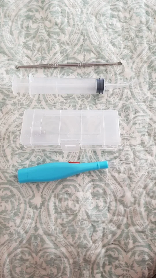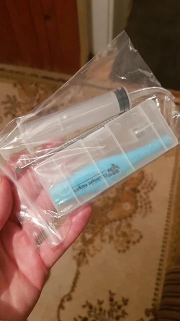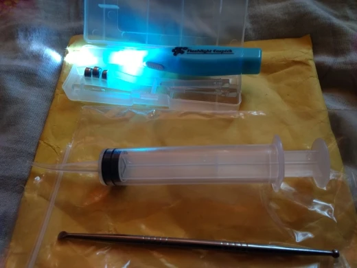 Работает! Пластиковое световое устройство работает с самого начала и поставляется с дополнительными батареями, шприц работает хорошо, и металлический покер такой же, как и в реальности, плюс, все идет в симпатичном маленьком пластиковом чехле. Отличная покупка для камней tonsil.