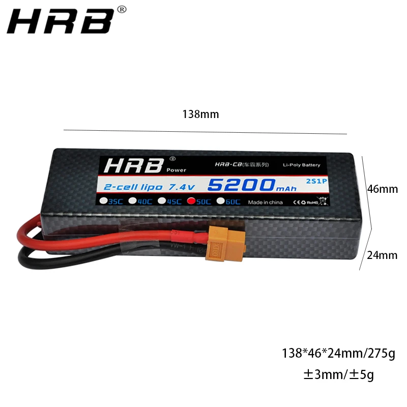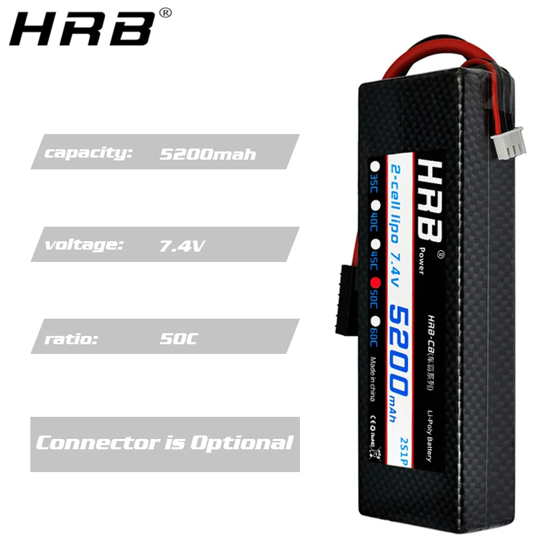 Аккумулятор HRB 5200 мАч, 7,4 В, Lipo 2S, 50C T Deans XT60 EC5 XT90, Жесткий Чехол, RC детали для Traxxas, авто, FPV, Дрон, самолеты, приманка, лодка