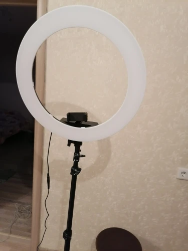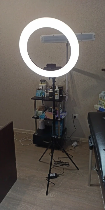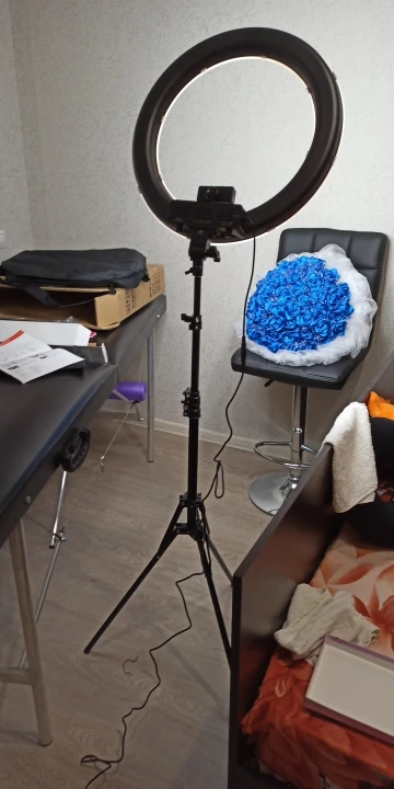 Лампа пришла оооочень неожиданно быстро, на 10 дней быстрее обещанного и так короткого времени доставки. Прям до квартиры курьером, круто! Лампа запакована хорошо, штатив в отдельной коробке, в комплекте сумка. Не скажу что прям супер надёжный штатив, но и не хлипкий. Немного страшновато было регулировать наклон лампы, чтобы не перекрутить резьбу, но норм, самое главное она принимает горизонтальное положение, для меня это важно. Интенсивность света регулируется на лампе, вроде все отлично. Сравнивать не с чем, это моя первая лампа, потому я точно довольна. Единственный минус это что мой телефон не вмещается в держатель (Honor 9x premium), размер примерно на IPhone 5, надо найти эту держалку теперь быстро. С Продавцом не общалась.