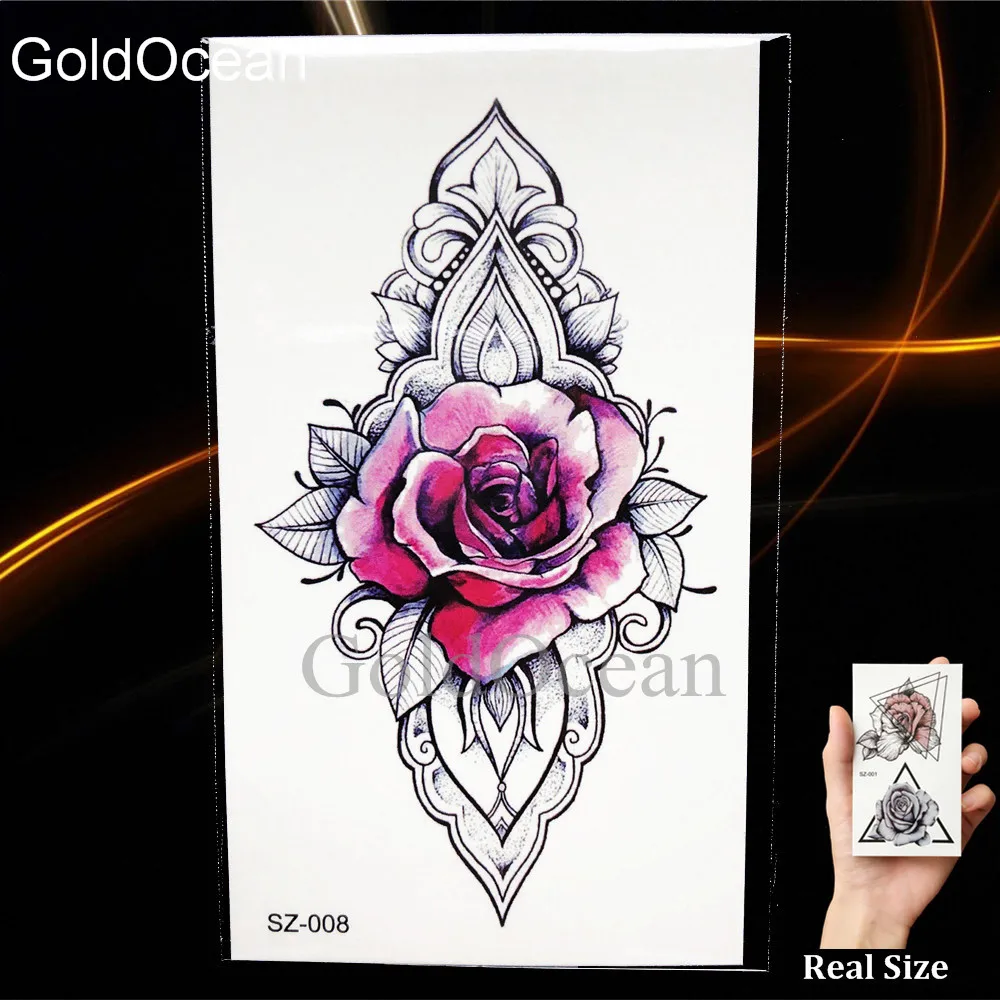 Сделай Сам роза цветок Акварельная Татуировка женские временные татуировки наклейки лист Флора девушка кружева водостойкие татуировки треугольник боди-арт