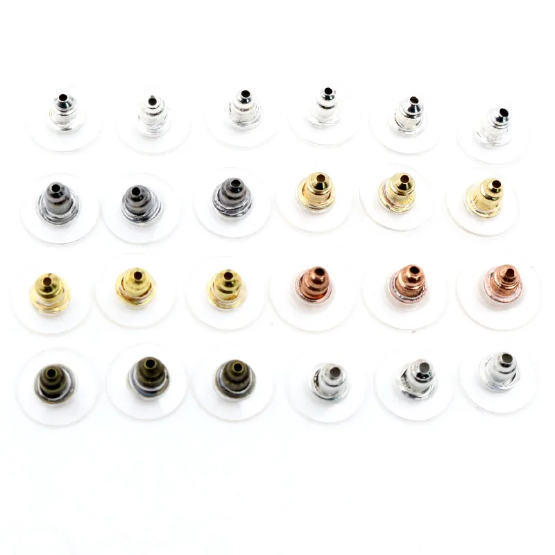 100 шт.лот 11x6 мм пластиковые металлические сережки, заглушки для пули, затычки для ушей, позолоченныепосеребренные фурнитура, ювелирные аксессуары