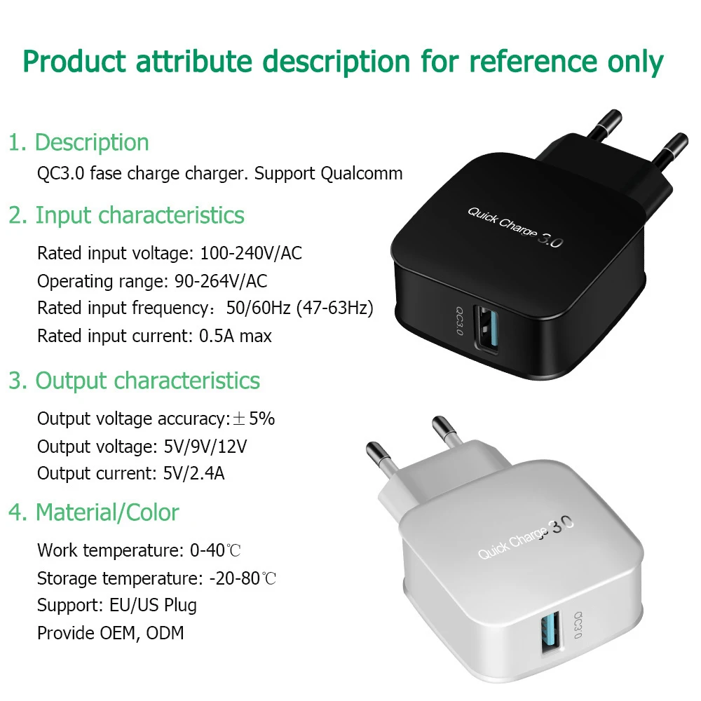 Зарядное устройство USB 3,0 для быстрой зарядки, быстрое зарядное устройство, портативный настенный адаптер 18 Вт для iphone Samsung J3 J5 J7 2016 Huawei xiaomi