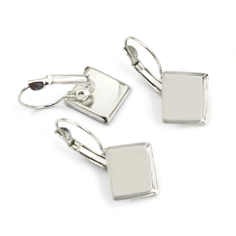 Новинка, 12 мм, 10 шт.лот, 8 видов цветов покрытие, квадратный стиль, Французский рычаг, задние серьги, пустыеБазовые, подходят для 12 мм стеклянных кабошонов