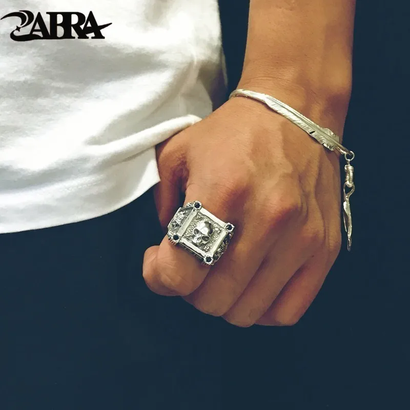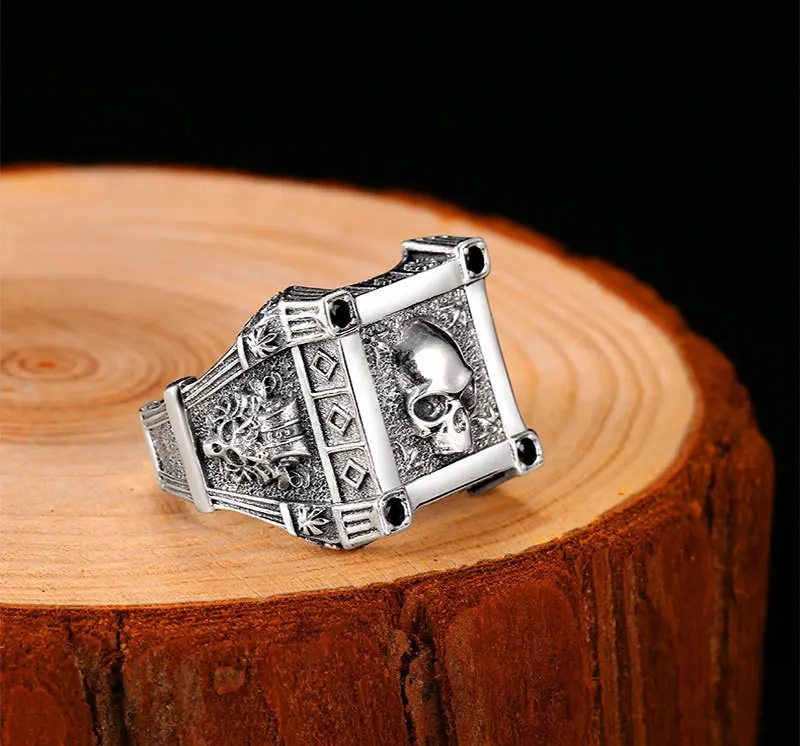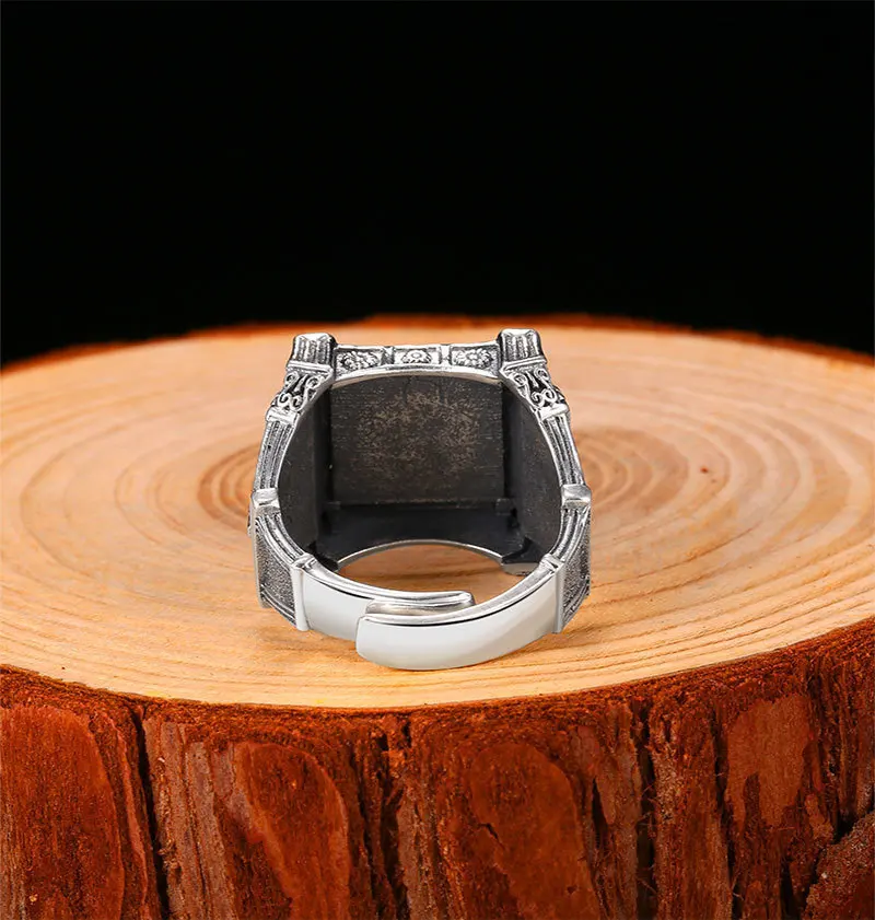 Кольцо мужское из серебра 925 пробы с цирконом, регулируемый размер