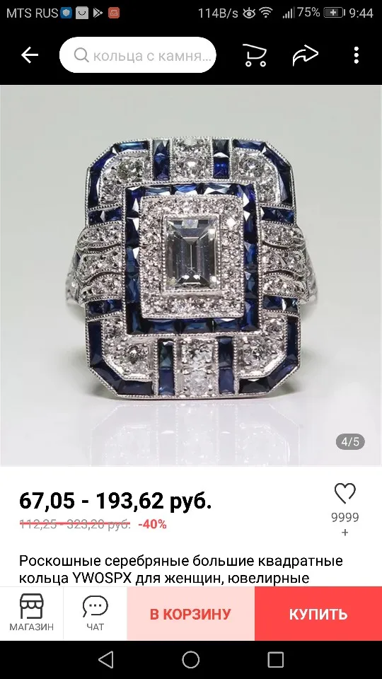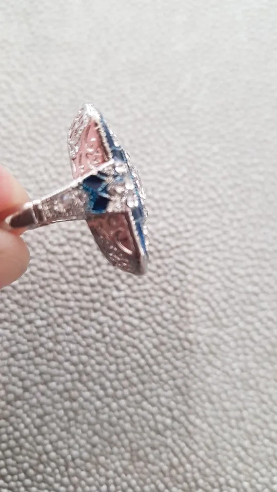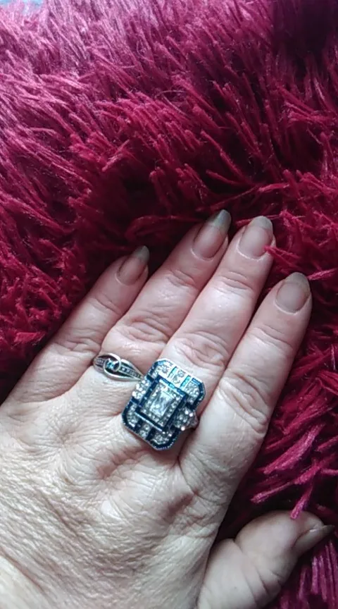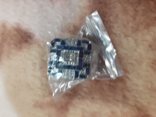 Кольцо пришло за 2 недели, но это единственный плюс. Прислали подделку, т.к. вместо синих камней присутствует тёмно-голубая эмаль, очень неаккуратно выполненная. Издалека может и не заметно, но очень неприятно. Спор решили мгновенно, деньги вернули. Только потому ставлю 2⭐. С продавцом не общались, ему это не надо похоже.