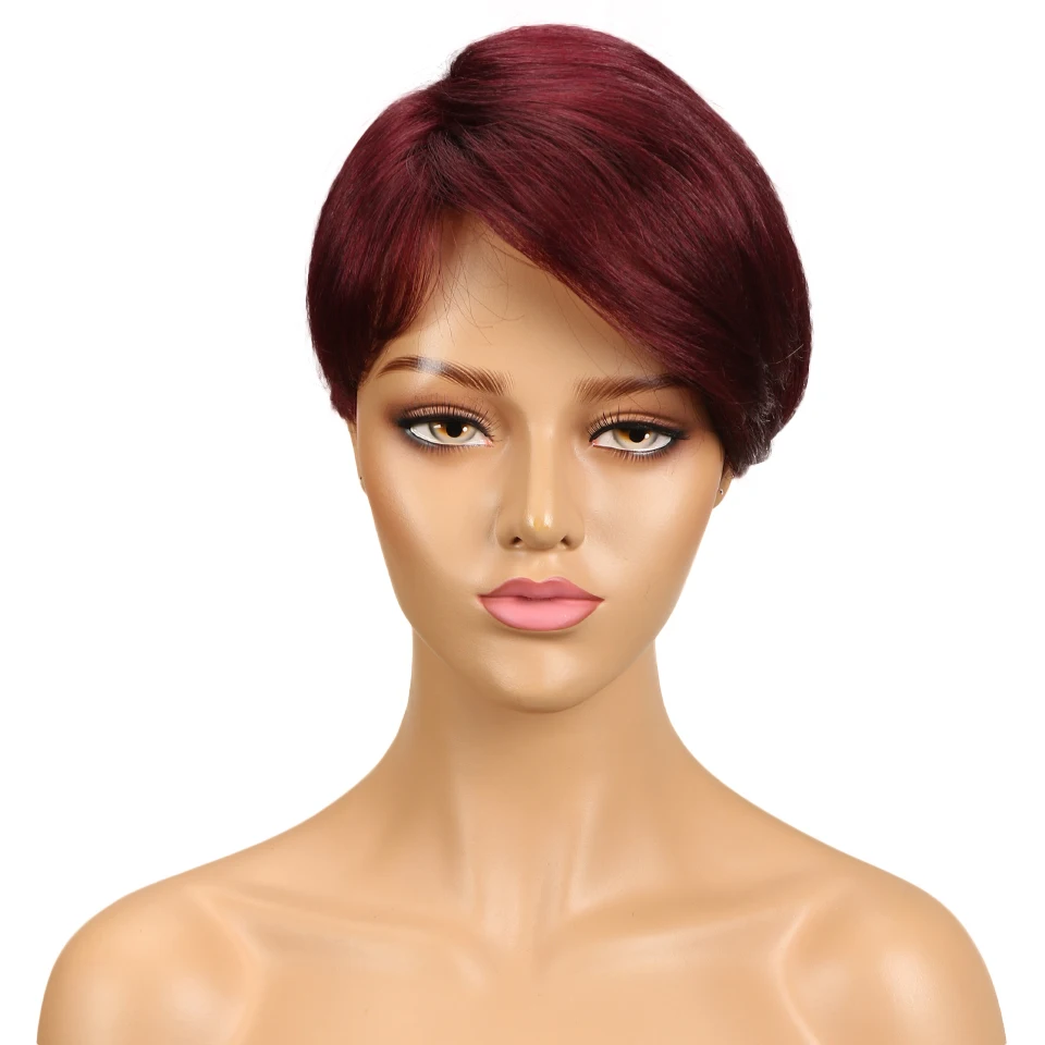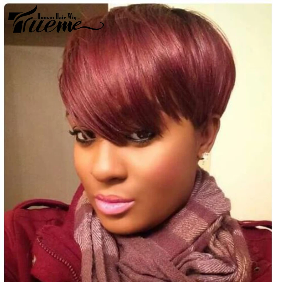 Парик для чернокожих женщин Trueme Pixie Cut, бразильские Прямые Человеческие волосы Remy, боковая часть, Ombre, полные короткие парики, распродажа