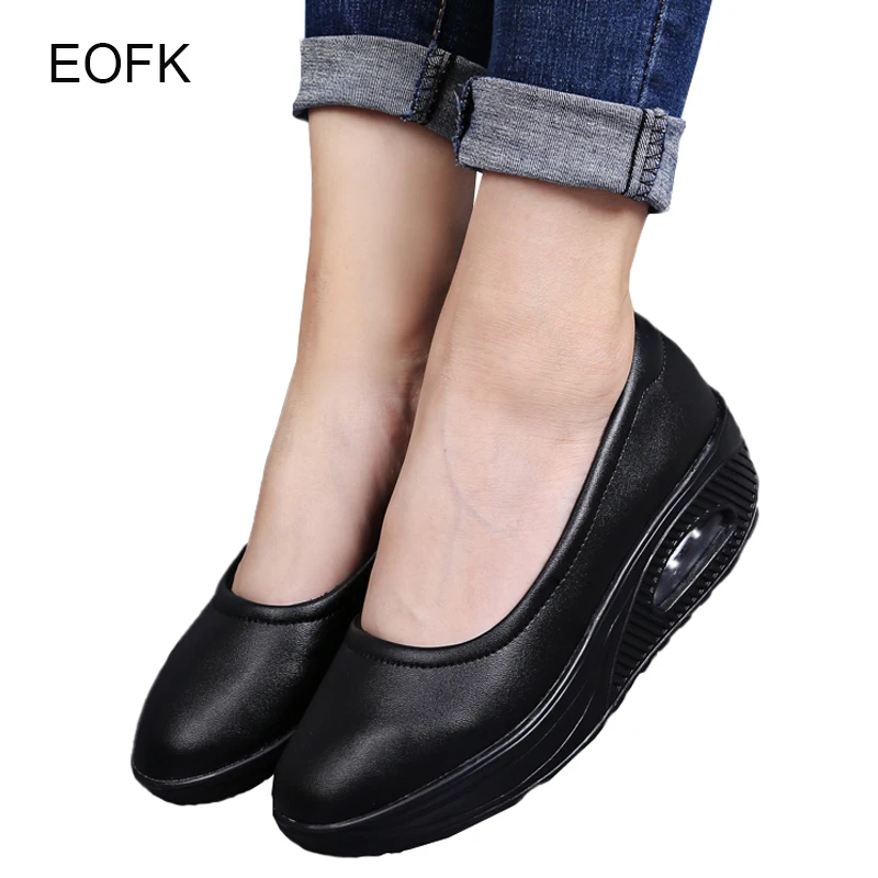 Женские мокасины с круглым носком EOFK, весенне-осенние однотонные лоферы из искусственной кожи на платформе без застежки, повседневные туфли на плоской подошве