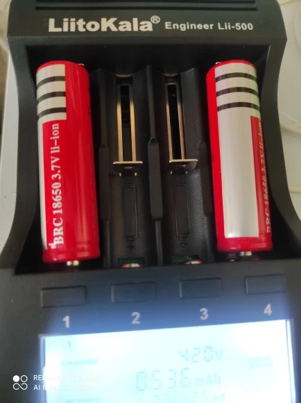 батарейки говно ,зарядка 4.2v 500ma,сделан из пластика .В Москве за 500р брал из металла с регулировкой зума .Этот брал за 611.Кину в машину на всякий случай.сразу берите нормальные 18650х2 доставка 2 дня из России