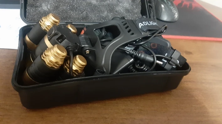 Восторг! Доставка за 2 дня: заказал 22го, 24го курьер вручил в руки. Рекорд на Али! Фонарь качественный, удобные ремни, яркие диоды, фокусировка с широким диапазоном. На узком поле высвечивает структуру матрицы, которая немного криво установлена, но при размытии этого не увидишь. Четыре мелких фонаря создают яркое пятно в центре, чуть подсвечивая вокруг. Вместе с размытым главным фонарем получается обалденная подсветка перед собой. На дальняк проверю вечером.