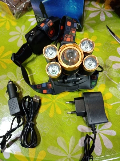 Получил заказ через три дня в СПБ. Пришло в коробке. Из всего набора зарядок пригодится наверно только USB A на круглый штекер. Светит ярко. Первая фотография основной фонарь, вторая маленькие четыре, третья все вместе.