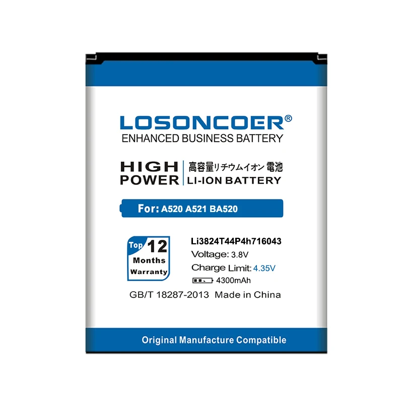 Аккумулятор LOSONCOER Li3824T44P4h716043 для ZTE Blade A520 A521 BA520, 4300 мАч