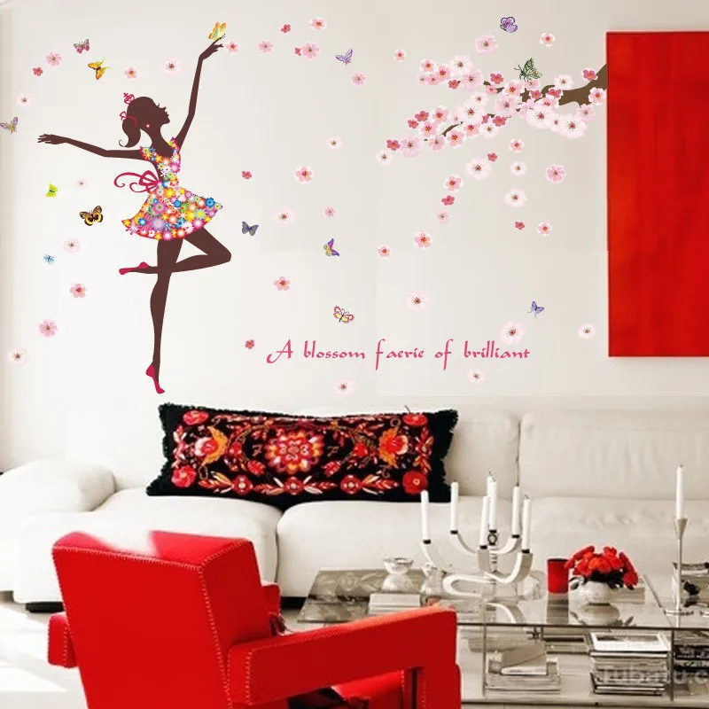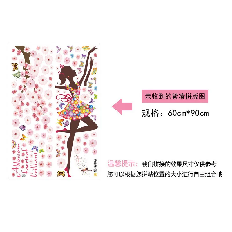 Настенная Наклейка Танцующая девочка с розовыми цветами, бабочкой, для девочек, комнаты, спальни, домашнее украшение, мультяшная роспись, искусство сделай сам, детские наклейки