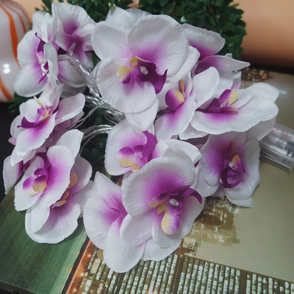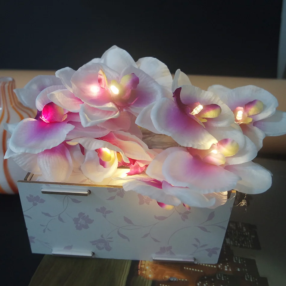 Цветочный венок орхидеи ручной работы, со светодиодной гирляндой, Цветочная Гирлянда для вазы, украшение для свадьбы