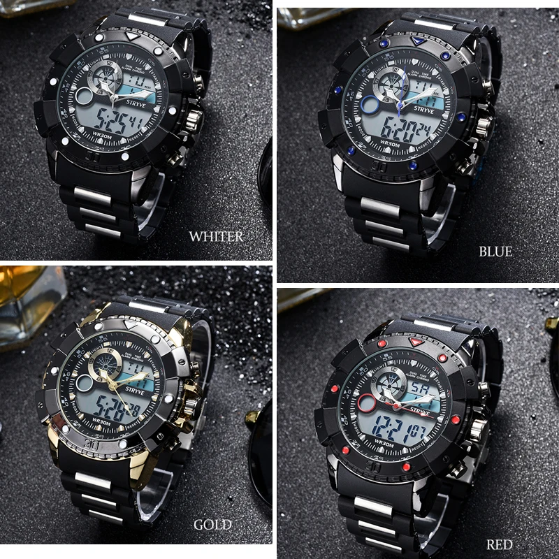 Мужские часы STRYVE, модные золотые часы, роскошные многофункциональные спортивные часы, мужские кварцевые аналоговые военные цифровые мужские часы, наручные часы