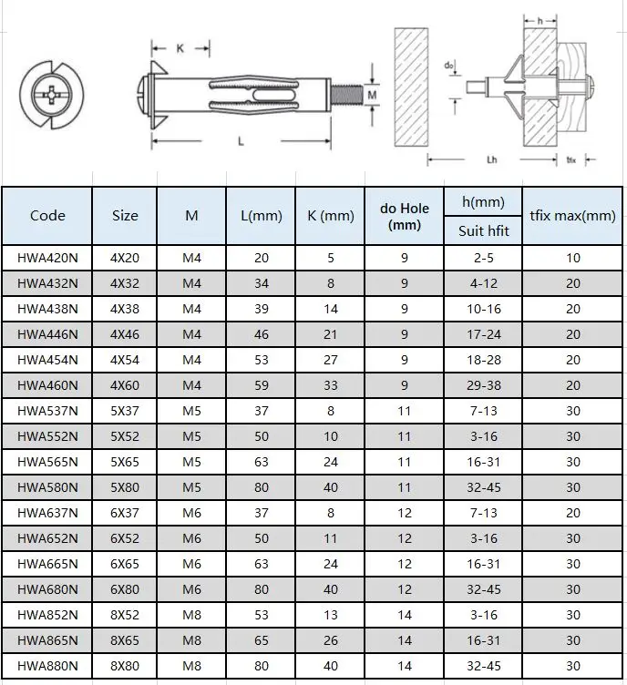 М4М5М6М8 полые настенные анкерные болты МоллиМеталлические Полости анкерныеполости фиксирующие анкеры